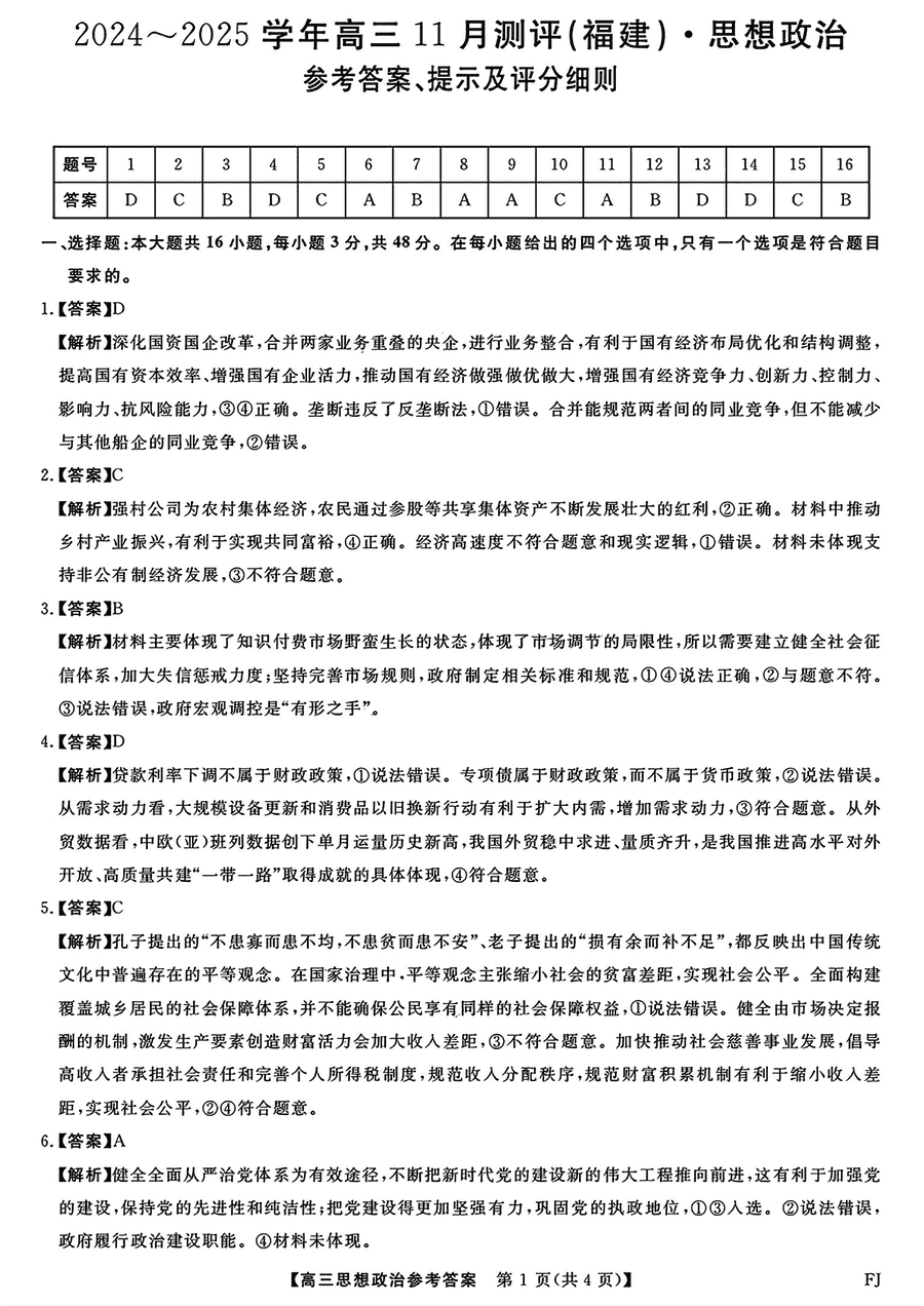 福建百校联考2025届高三11月联考政治试题及答案 时间:2024-11-16 15:13 福建 文综试题 福建省百校联考2025届高三11月联考政治考试已于近日开考,为方便考生考后及时查看考试情况,查漏补缺、弥补不足,本文整理了试题答案解析相关信息! 汇总:福建省百校联考2025届高三11月联考试题及答案汇总 政治试题及答案解析