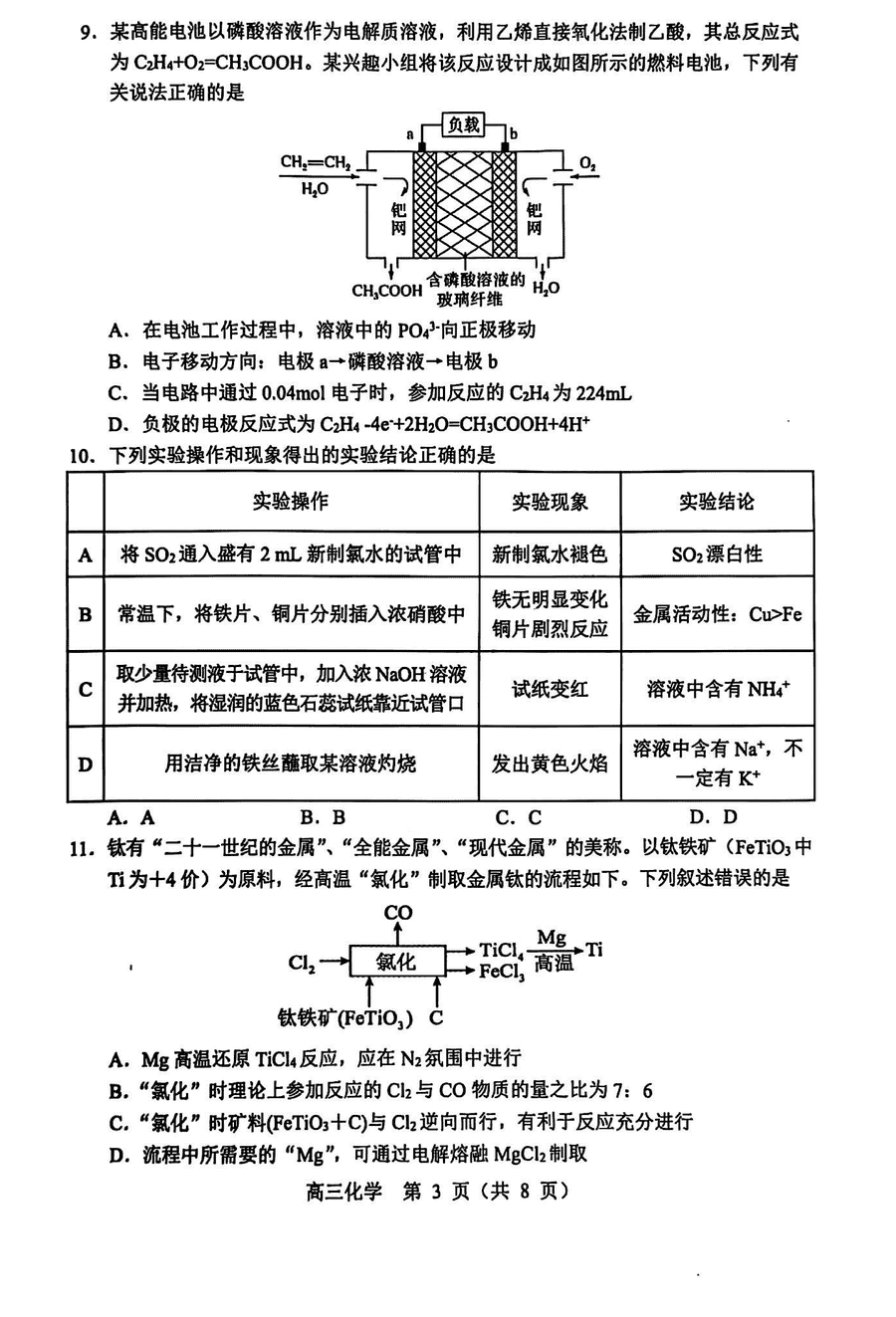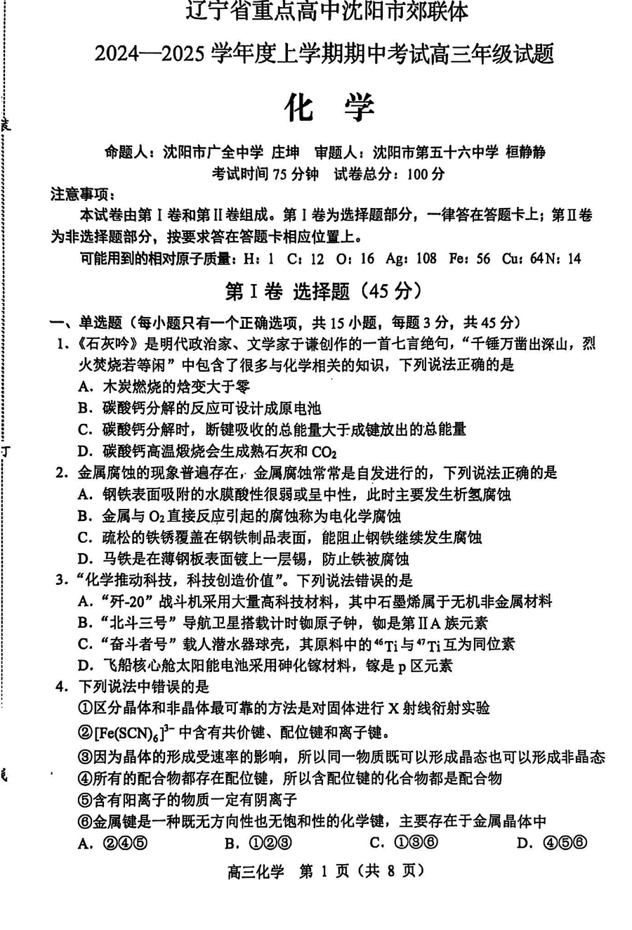 沈阳市郊联体2024-2025学年高三上11月期中化学试题及答案