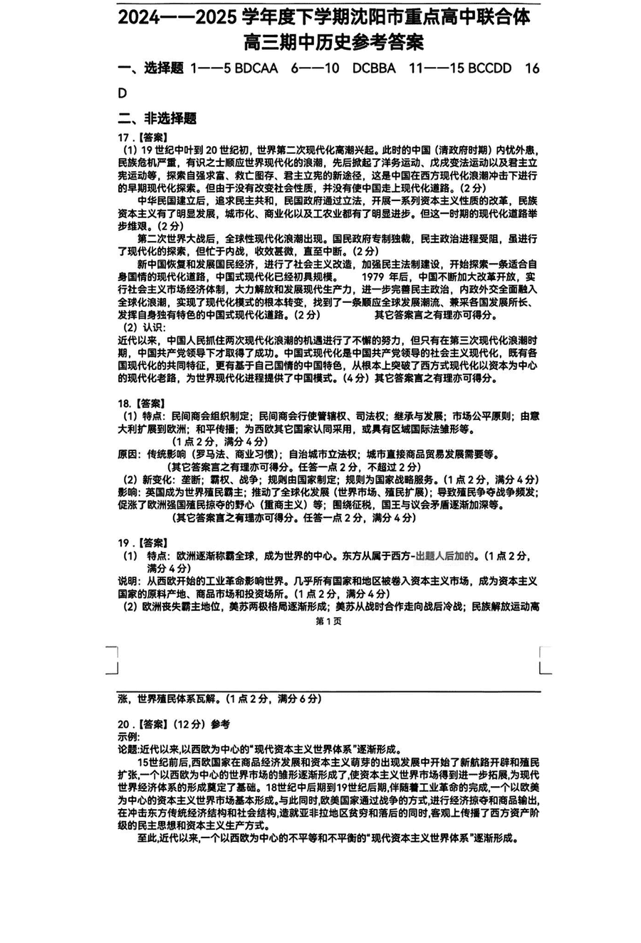 沈阳市郊联体2024-2025学年高三上学期11月期中历史考试已于近日开考,为方便考生考后及时查看考试情况,查漏补缺、弥补不足,本文整理了试题答案解析相关信息!