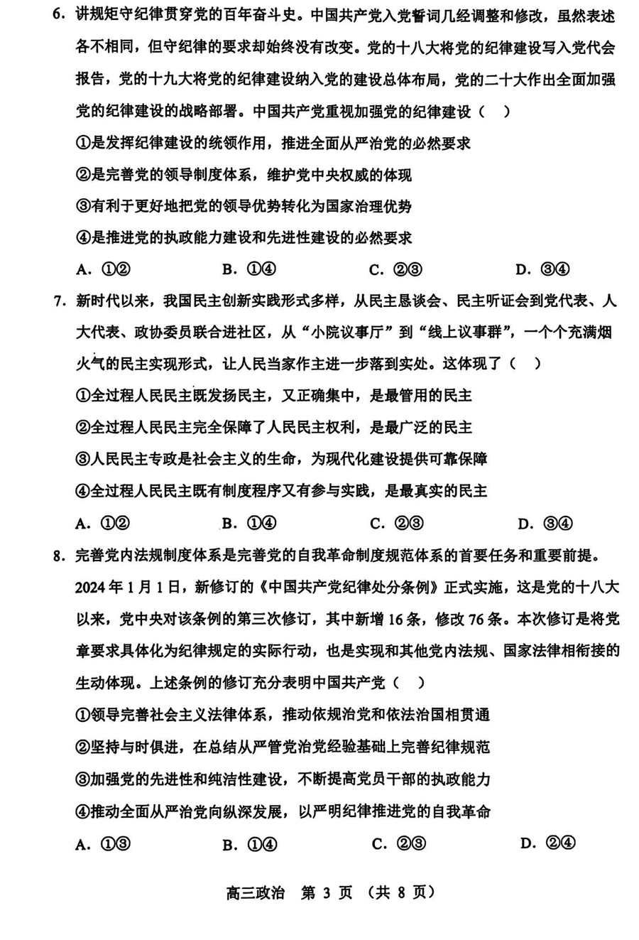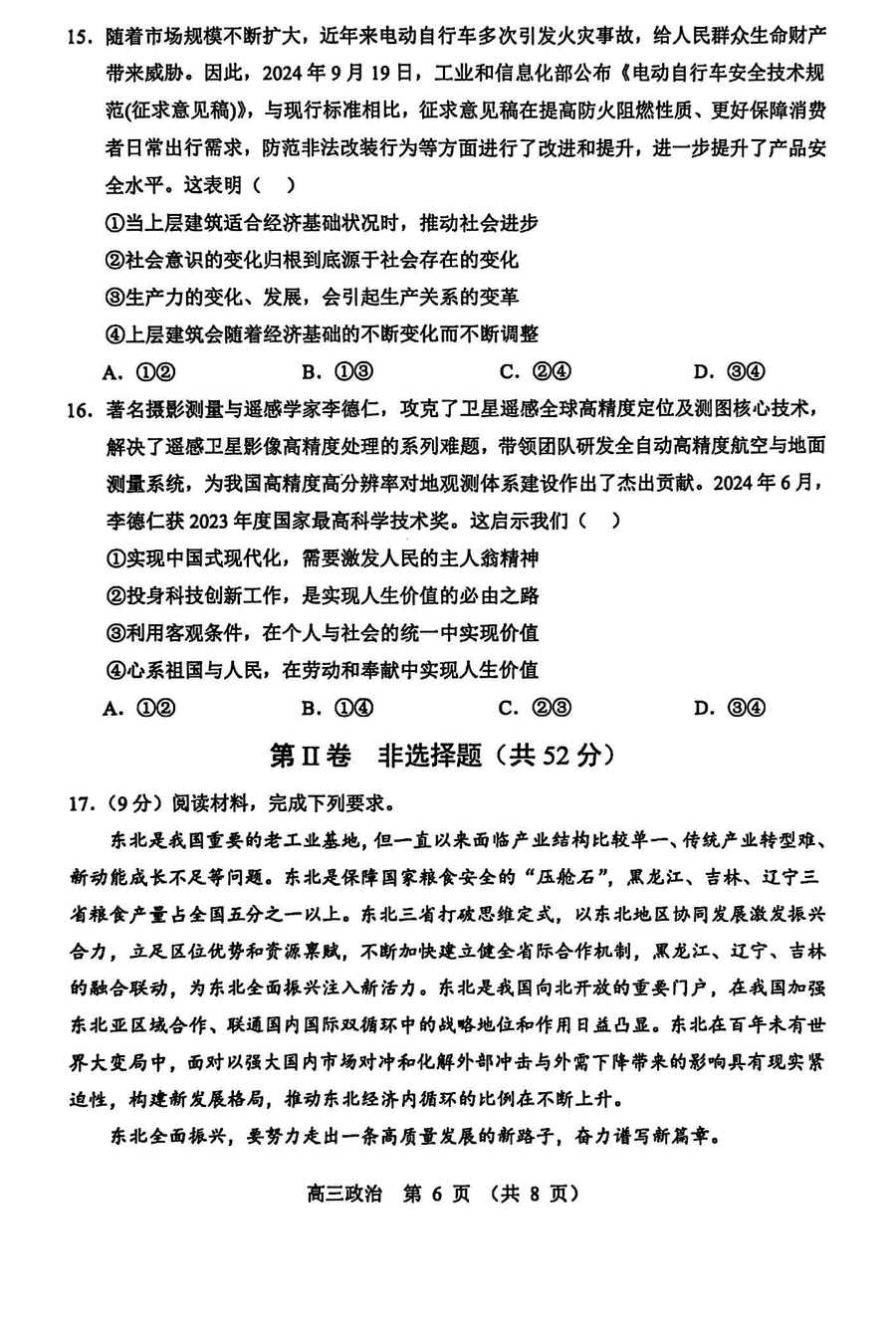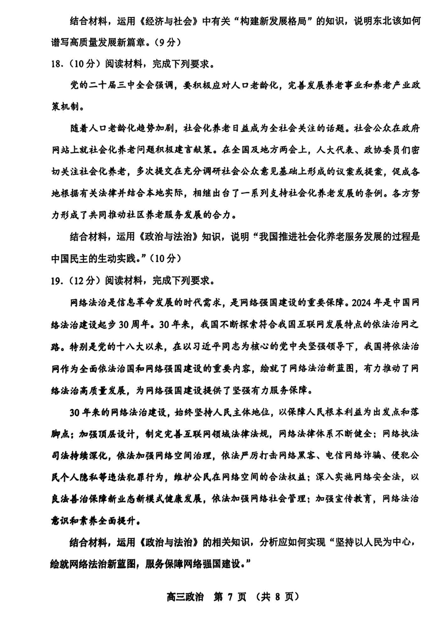 沈阳市郊联体2024-2025学年高三上11月期中政治试题及答案
