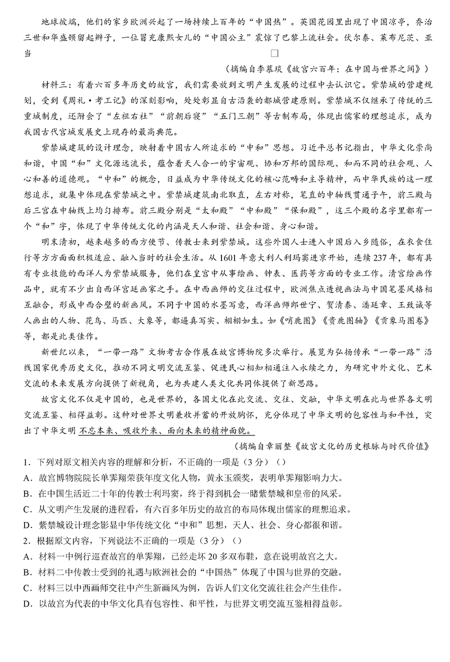 沈阳市郊联体2024-2025学年高三上11月期中语文试题及答案