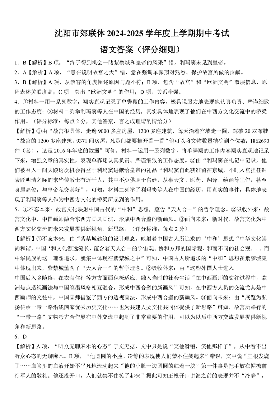 沈阳市郊联体2024-2025学年高三上学期11月期中语文考试已于近日开考,为方便考生考后及时查看考试情况,查漏补缺、弥补不足,本文整理了试题答案解析相关信息!