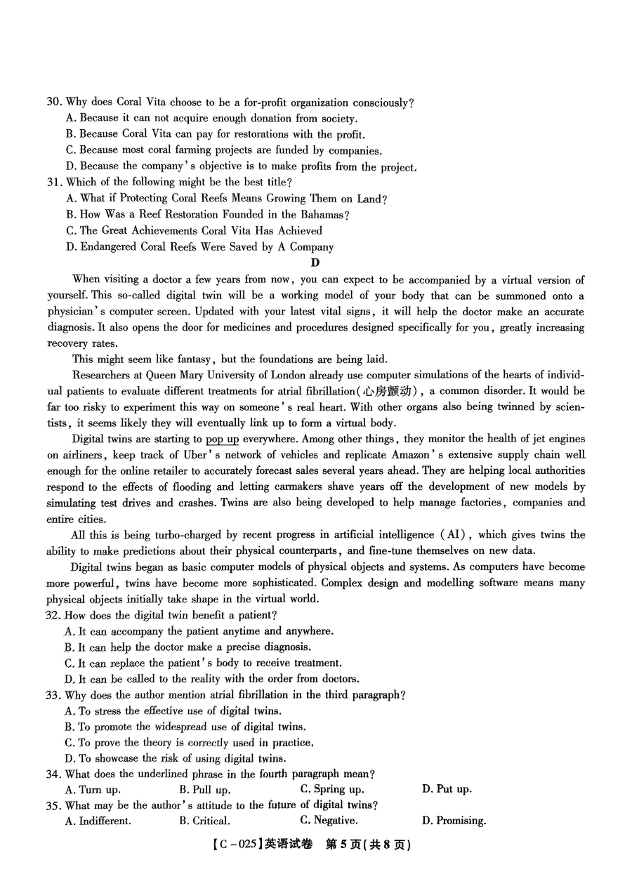 2025届江西省九校联考高三上11月期中英语试题及答案