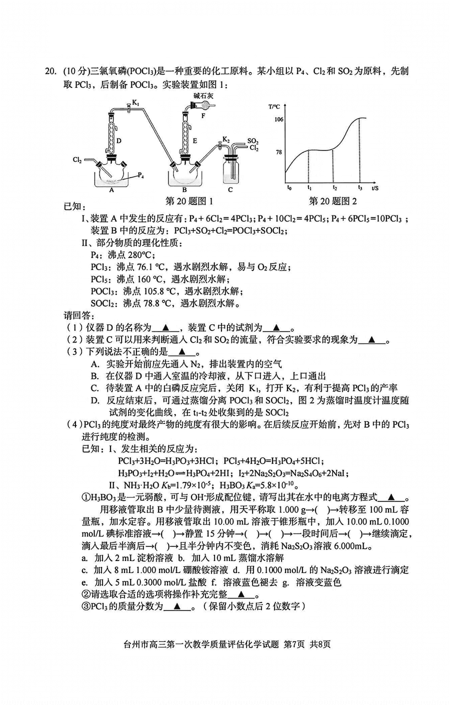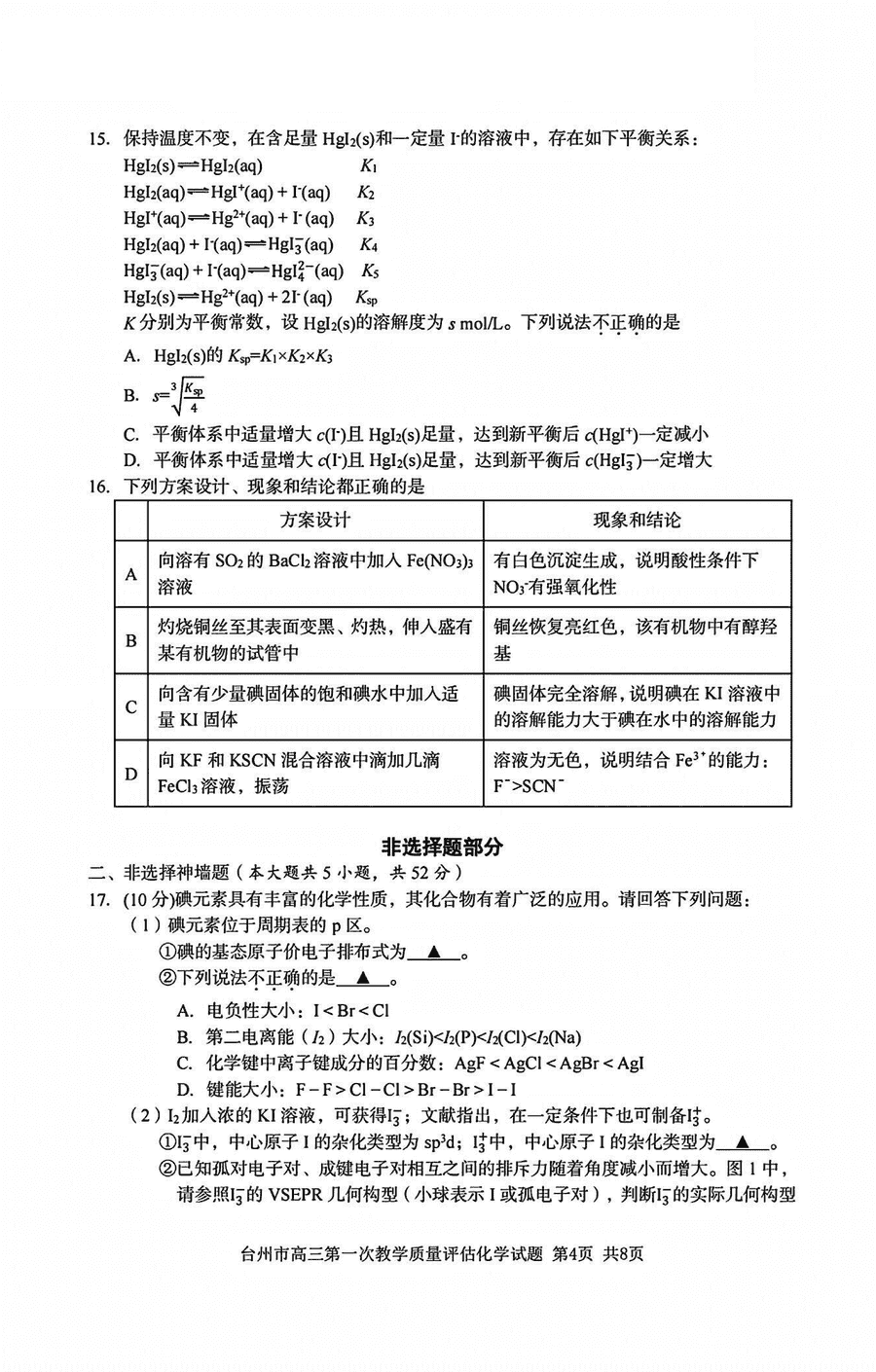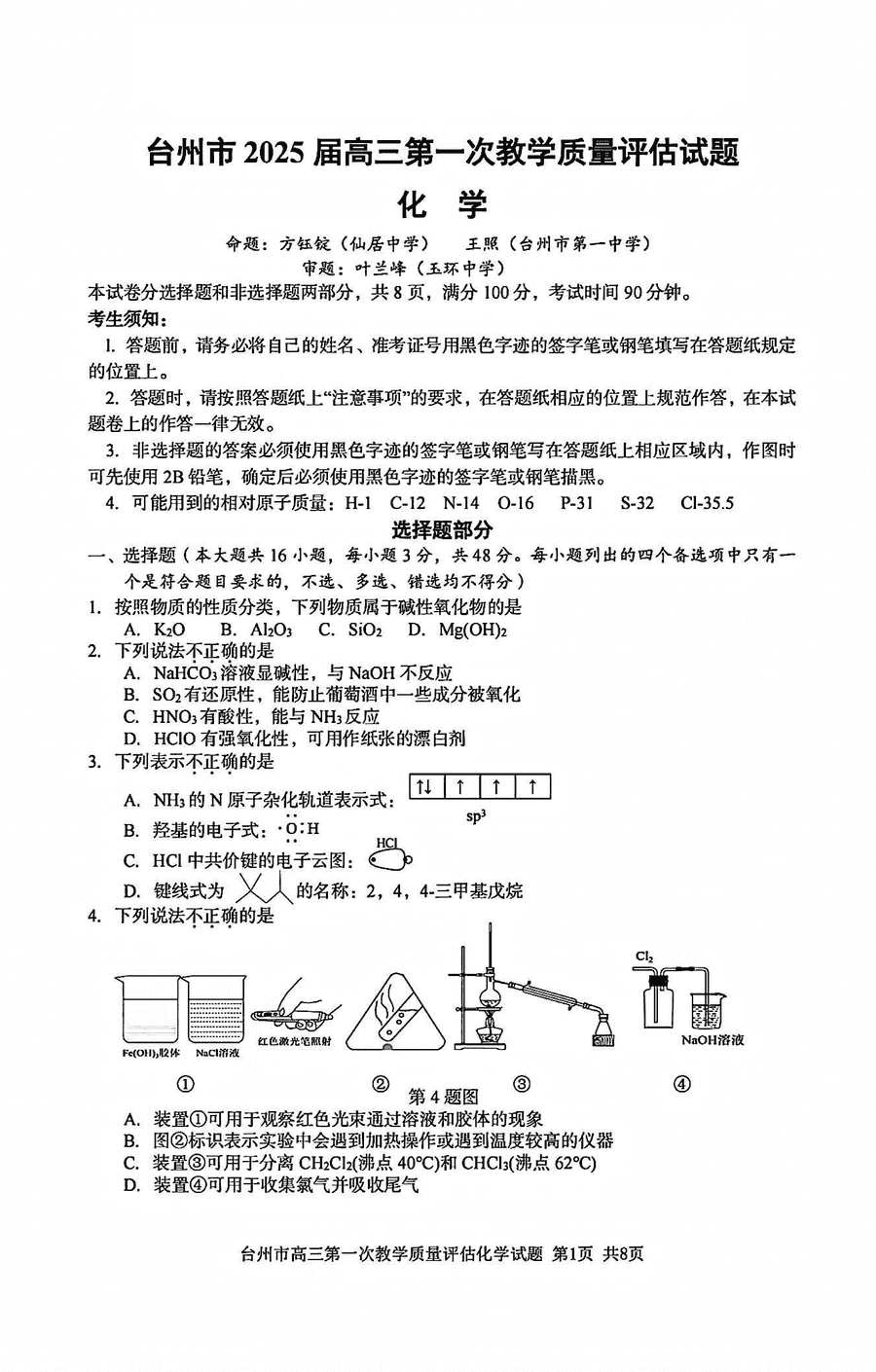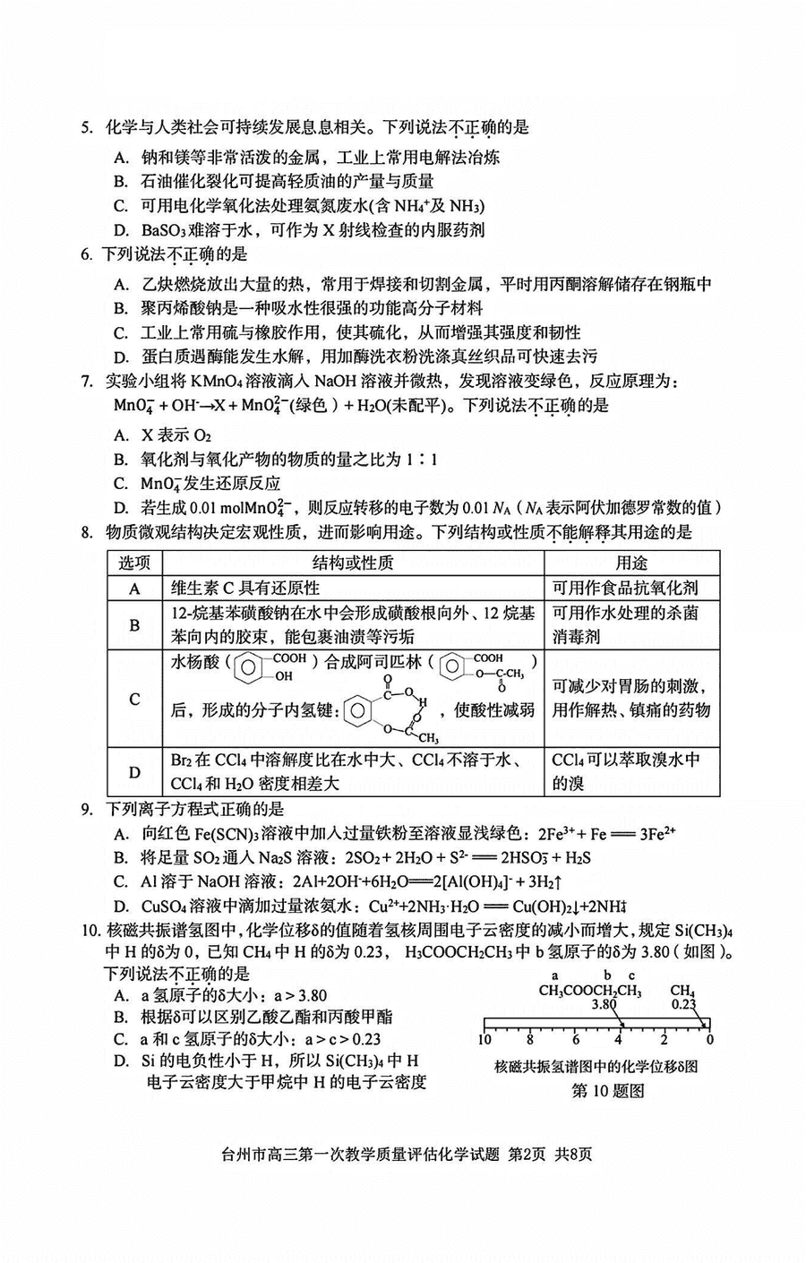 台州市2025届高三第一次教学质量评估化学试题及答案 时间:2024-11-17 01:54 浙江 理综试题 2025届江西省九校联考高三上学期11月期中化学考试已于近日开考,为方便考生考后及时查看考试情况,查漏补缺、弥补不足,本文整理了试题答案解析相关信息! 汇总:台州市2025届高三第一次教学质量评估试题及答案汇总 化学试题及答案解析