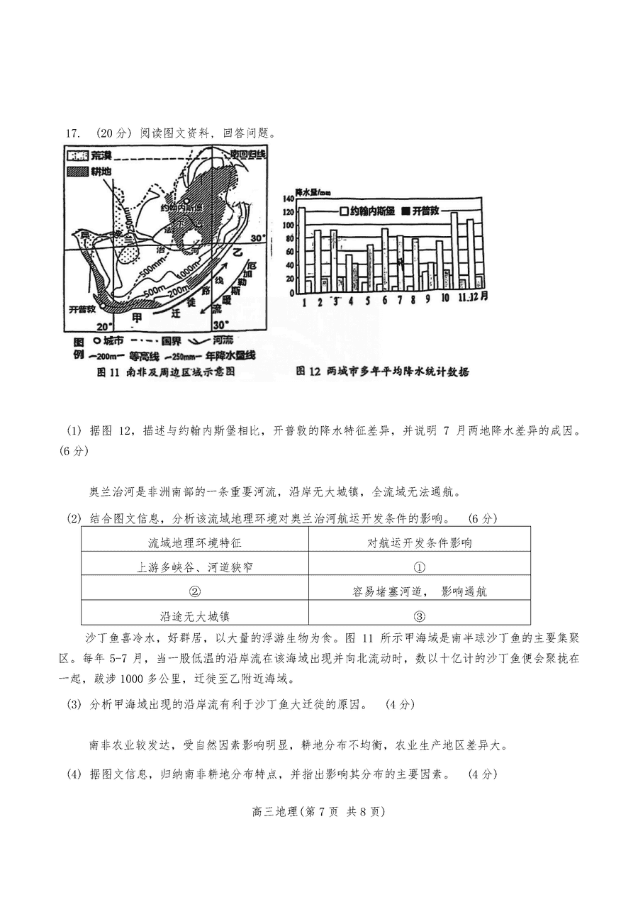 天津市南开区2024-2025学年高三上11月期中地理试题及答案