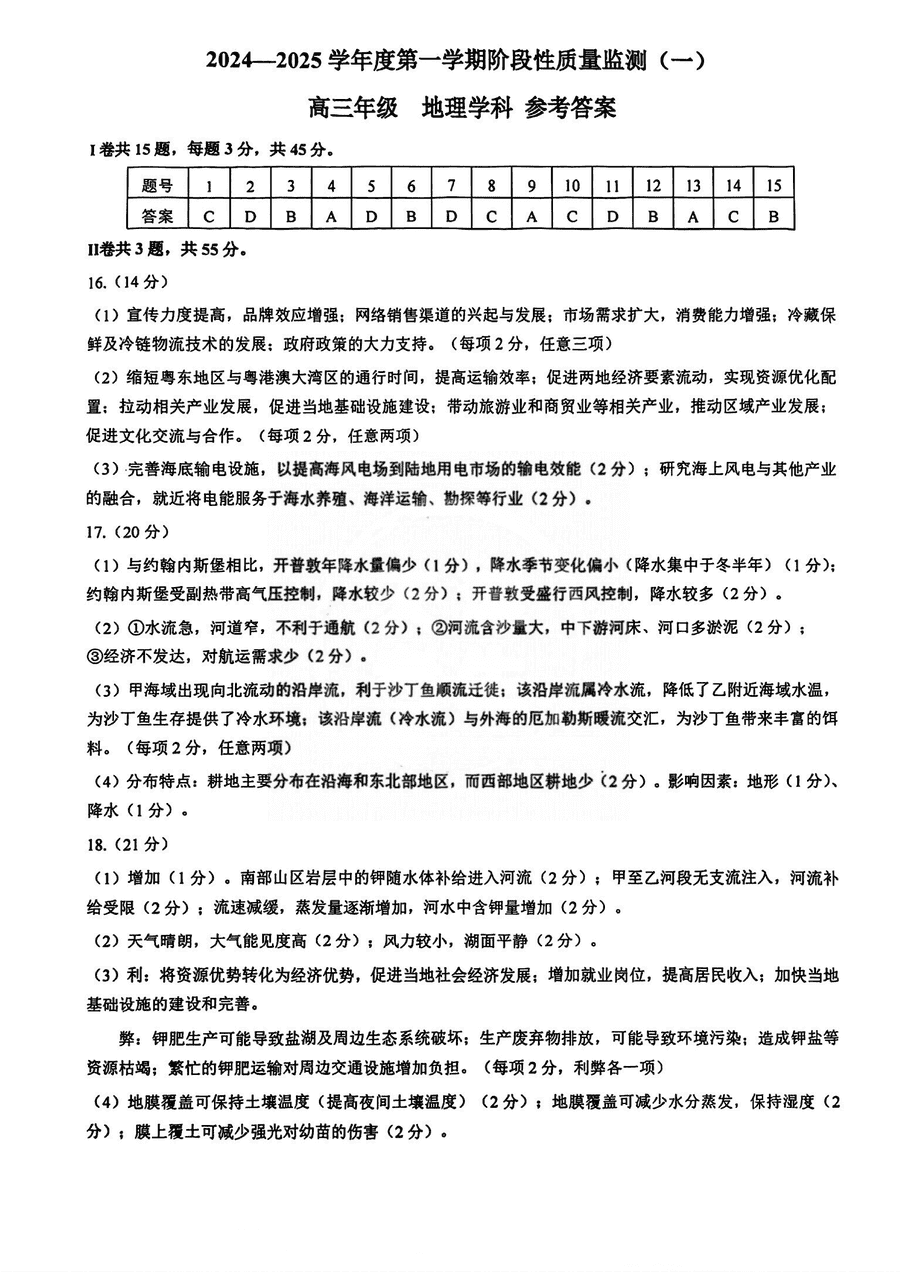 天津市南开区2024-2025学年高三上11月期中地理考试已于近日开考,为方便考生考后及时查看考试情况,查漏补缺、弥补不足,本文整理了试题答案解析相关信息!