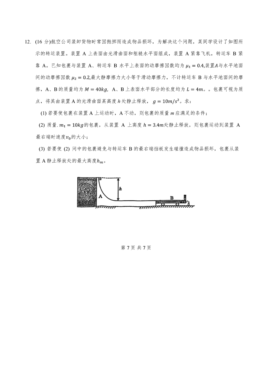 天津市南开区2024-2025学年高三上11月期中物理试题及答案