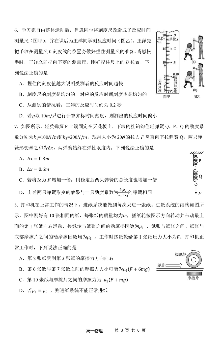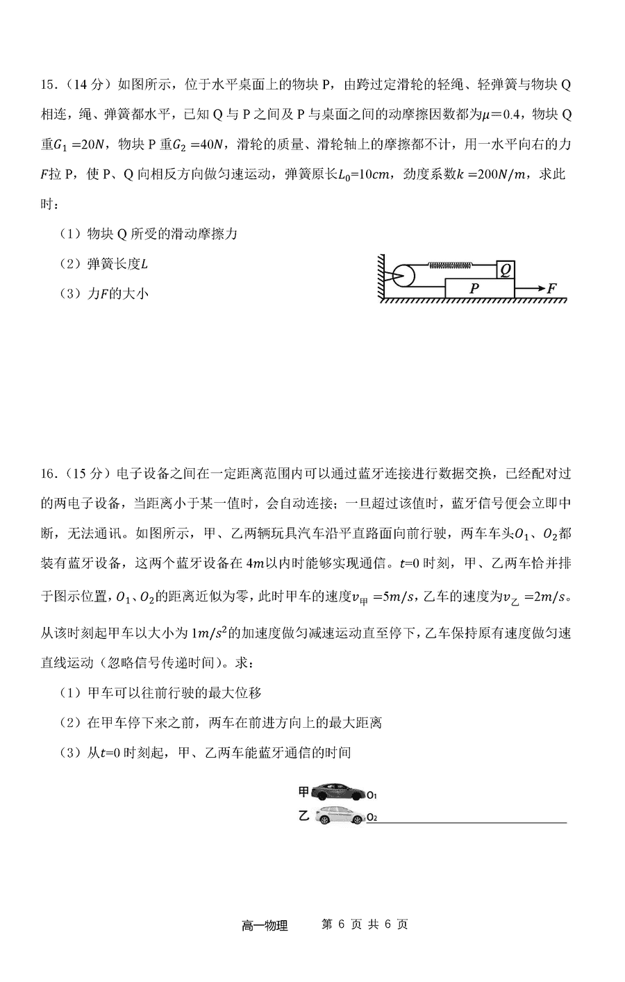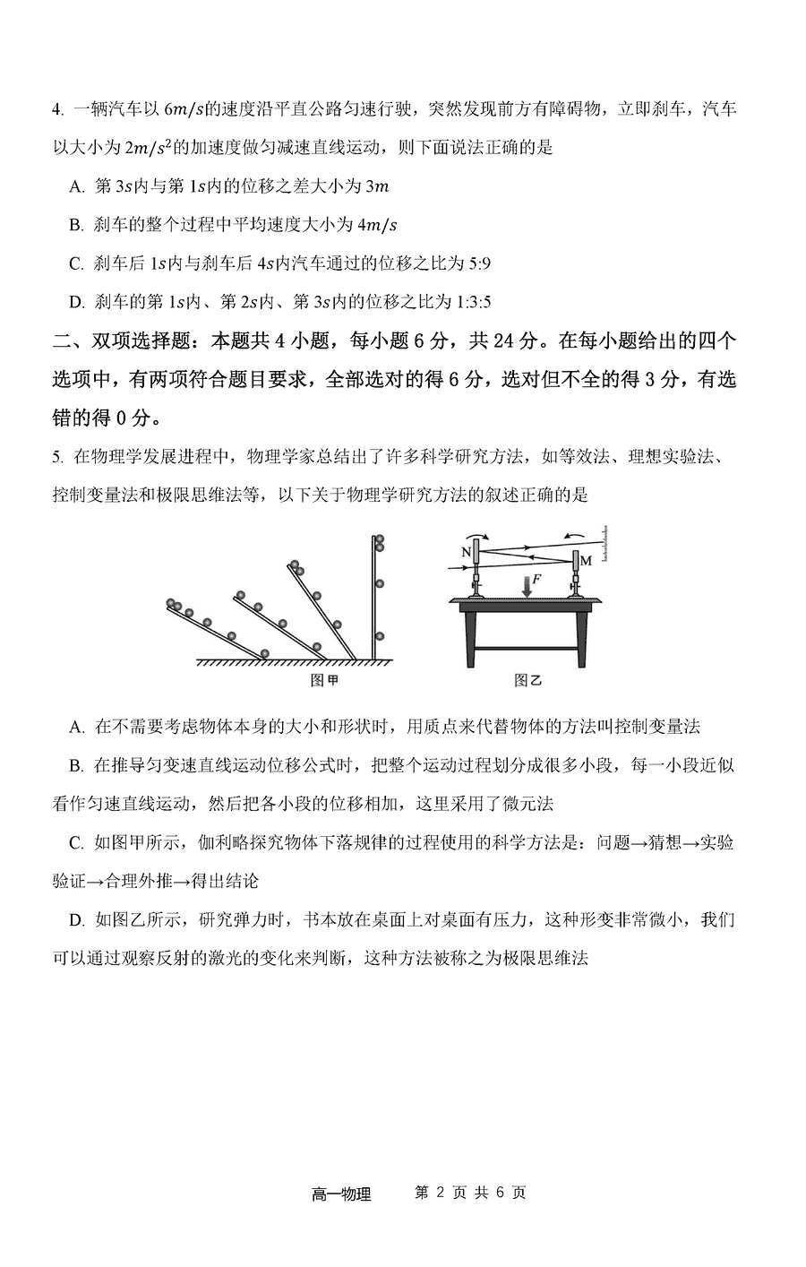 福宁古五校教学联合体2024-2025学年高一上学期期中物理试题及答案