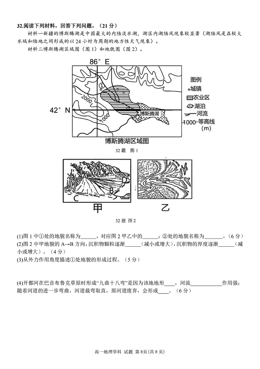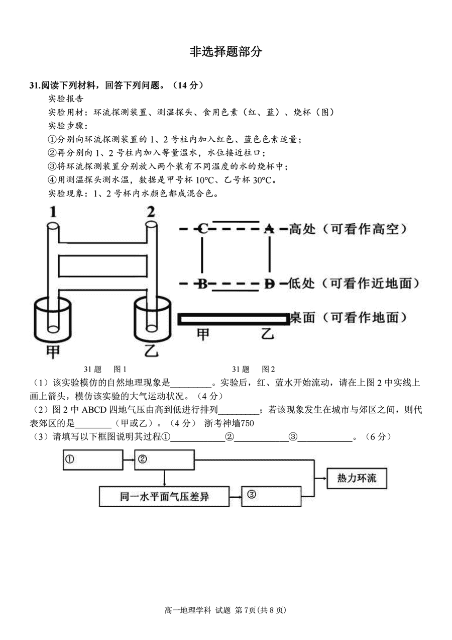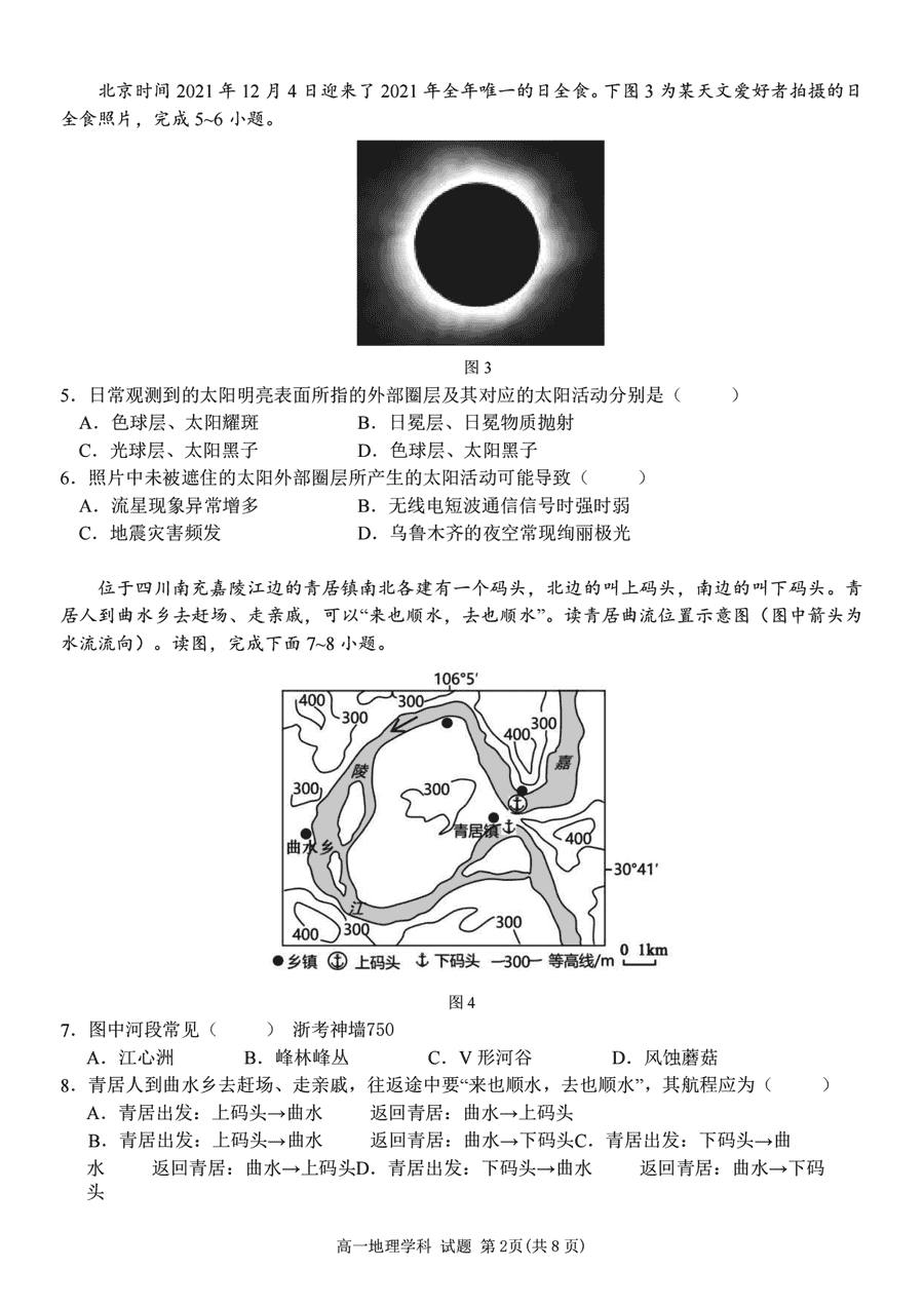 嘉兴八校2024-2025学年高一期中地理试题及答案