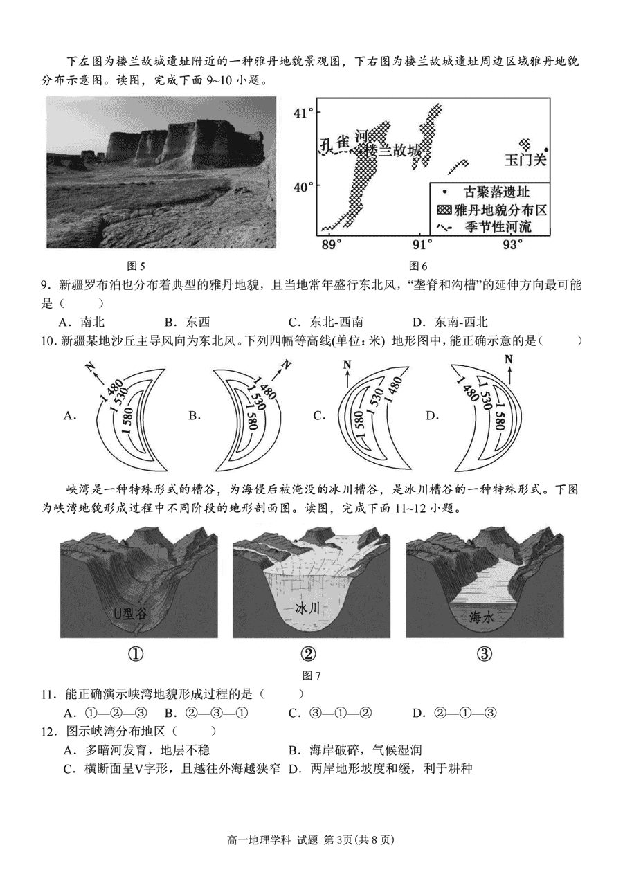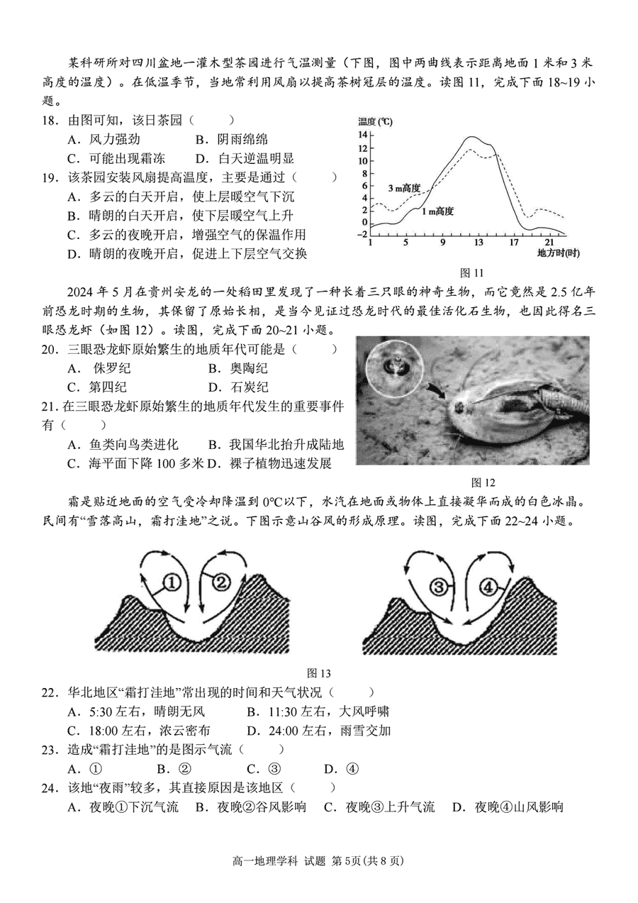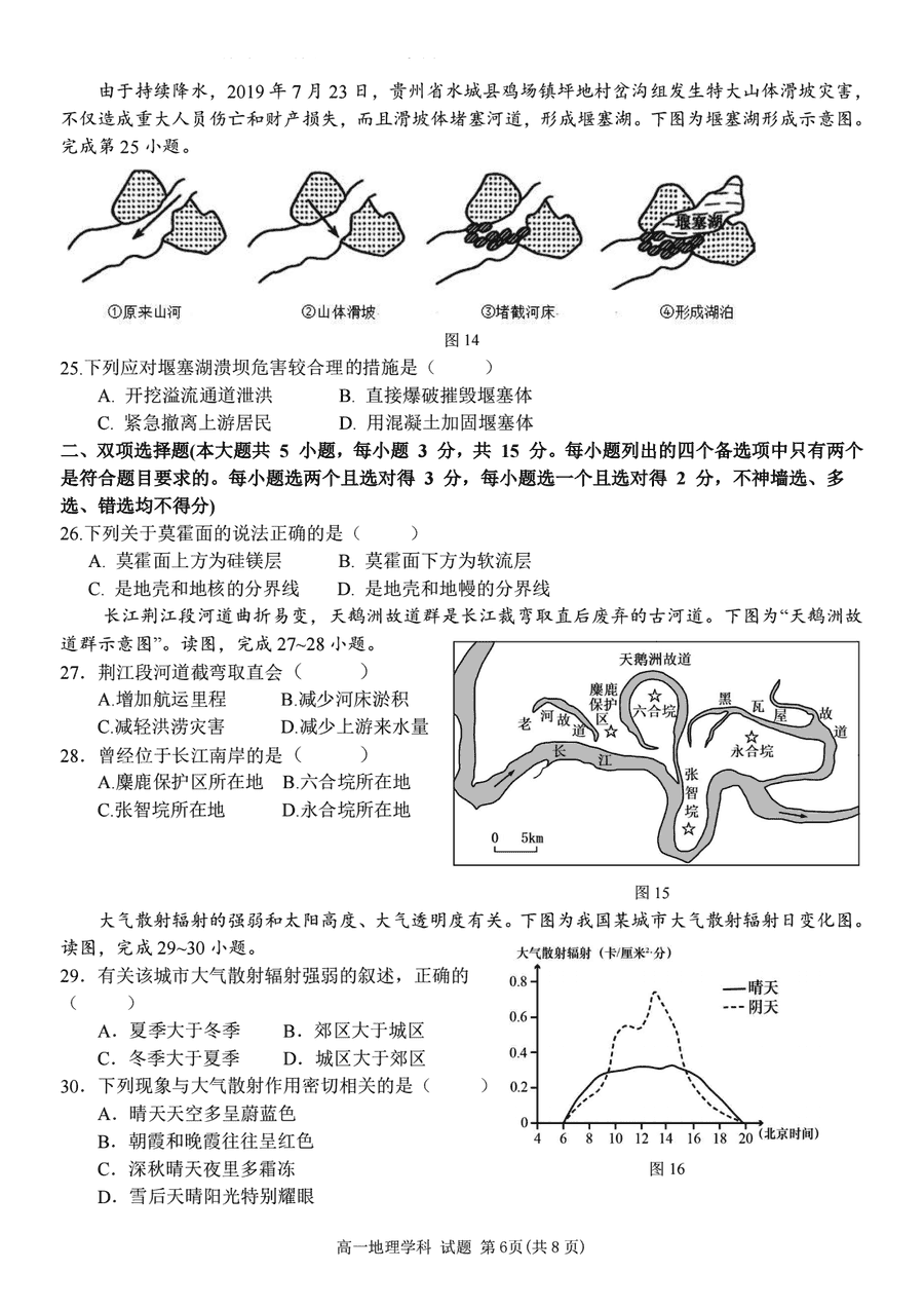 嘉兴八校2024-2025学年高一期中地理试题及答案