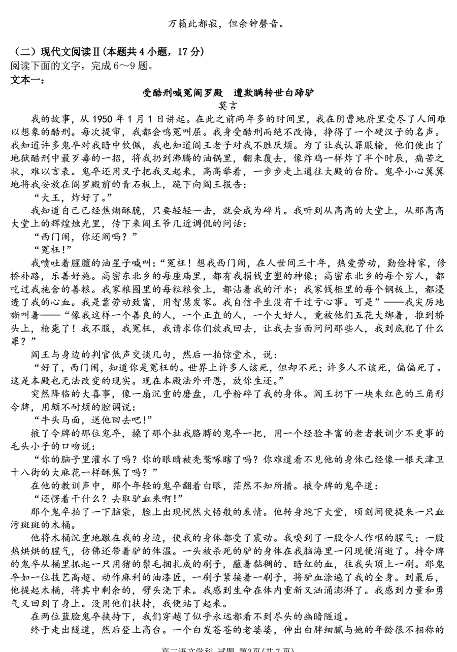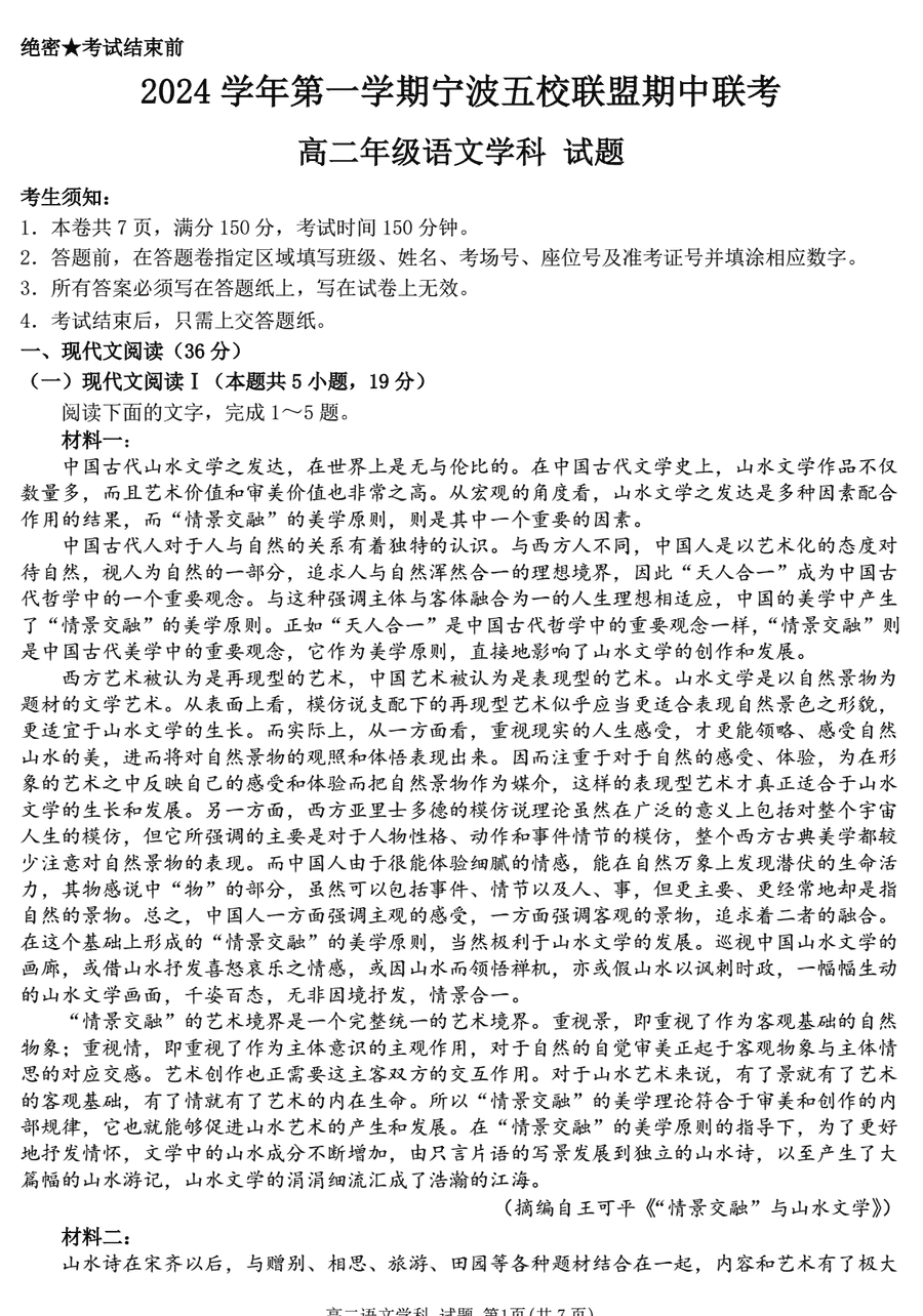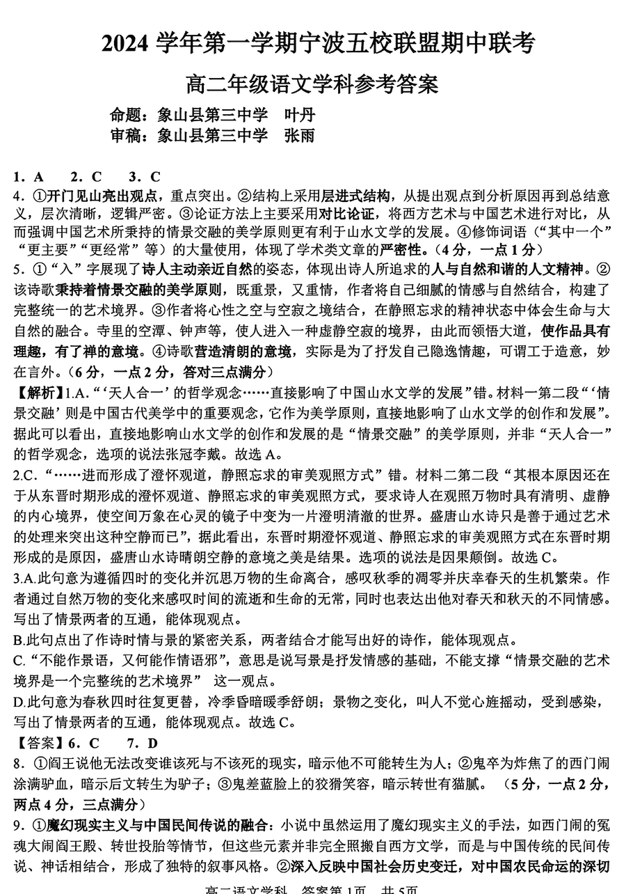 宁波五校联盟2024-2025学年高二期中语文试题及答案