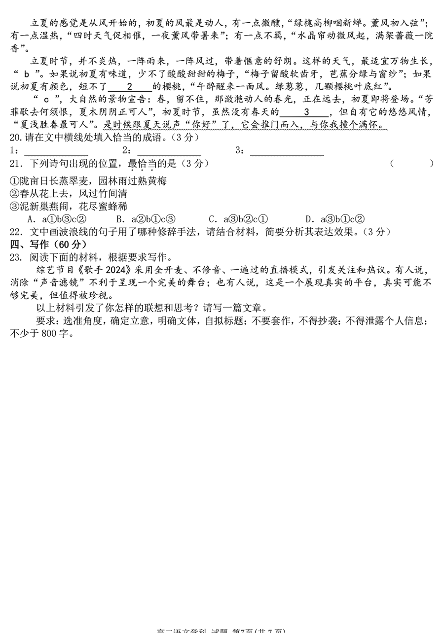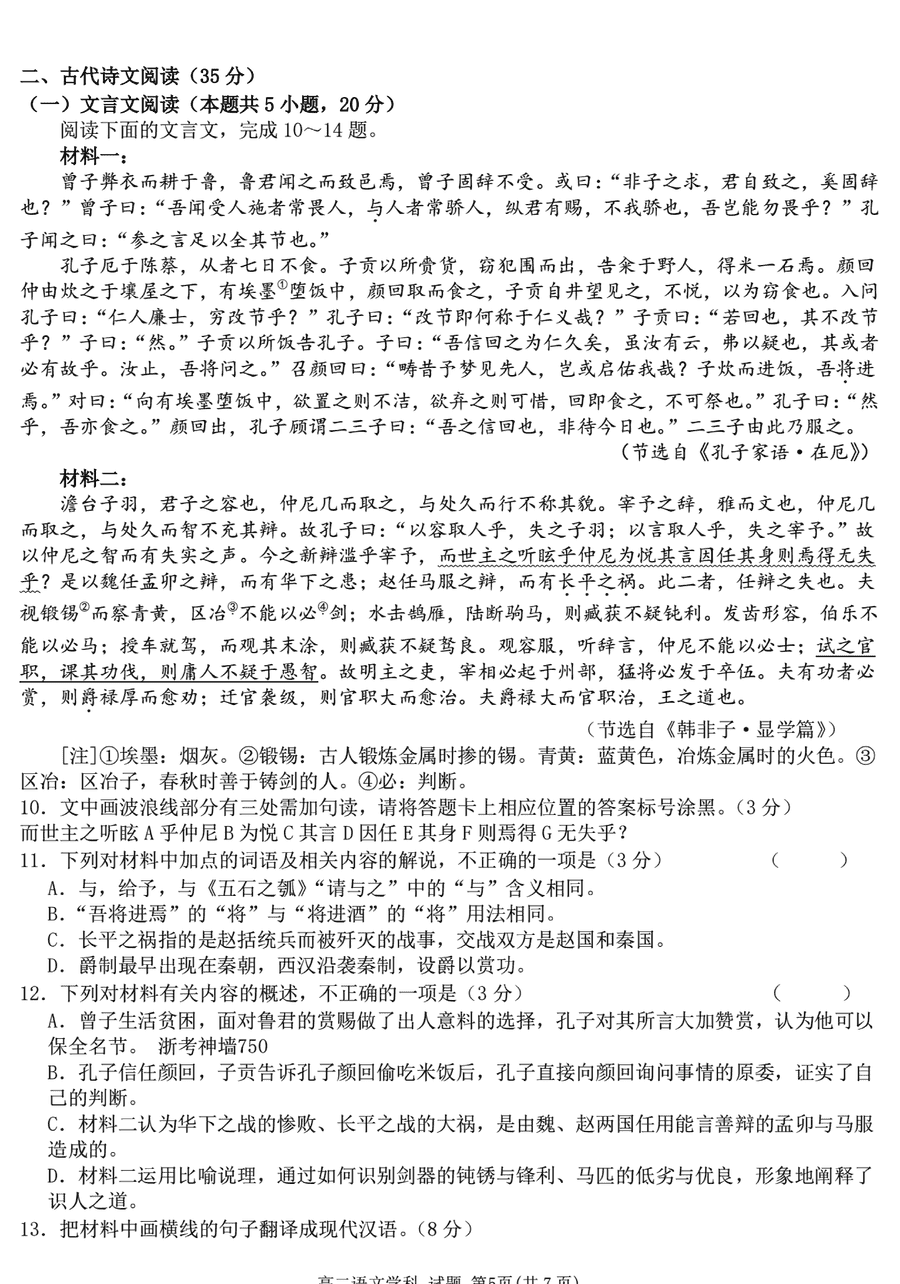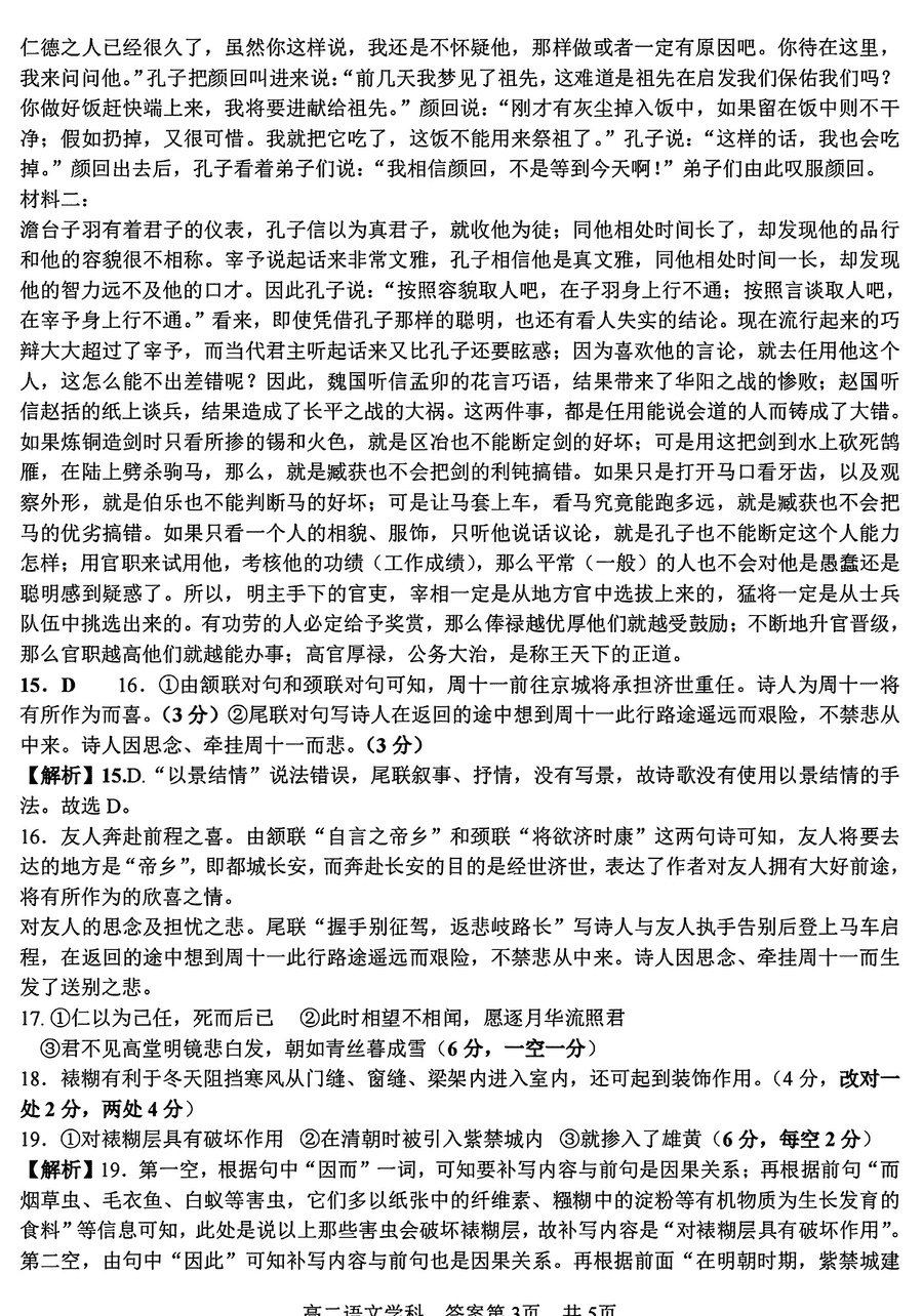 宁波五校联盟2024-2025学年高二期中语文试题及答案