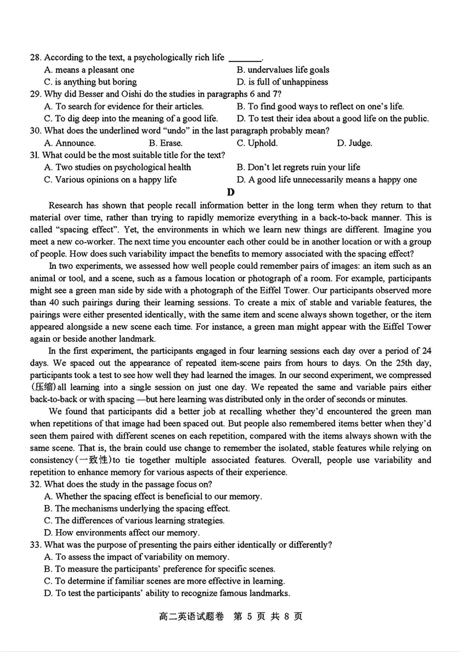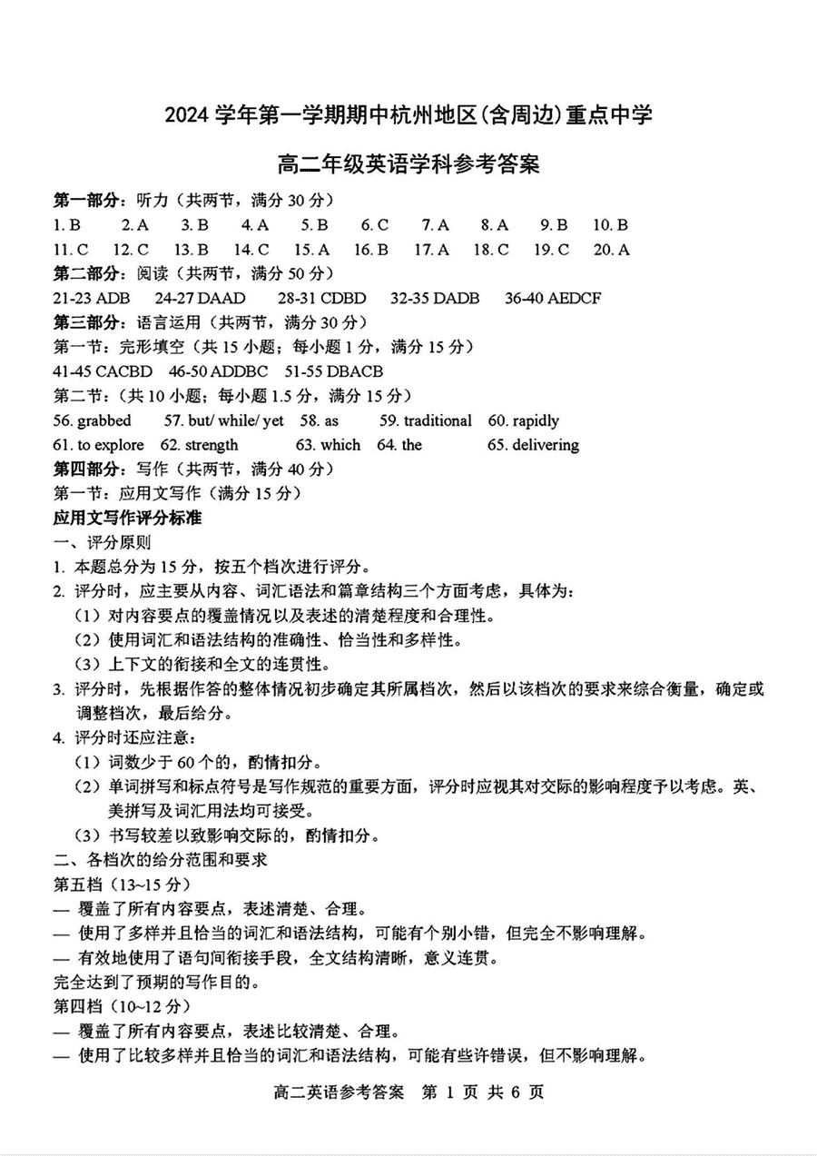 杭州地区(含周边)重点中学2024-2025学年高二上学期11月期中英语考试已于近日开考,为方便考生考后及时查看考试情况,查漏补缺、弥补不足,本文整理了试题答案解析相关信息!