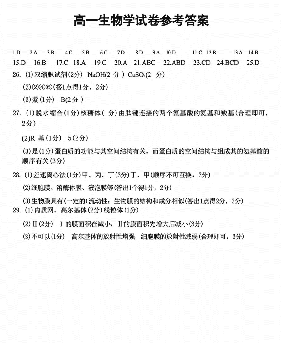 吉黑两省十校联合体2024-2025学年高一上11月期中生物试题及答案