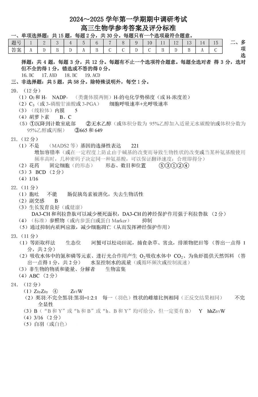 江苏连云港市2024-2025学年高三上学期期中生物考试已于近日开考,为方便考生考后及时查看考试情况,查漏补缺、弥补不足,本文整理了试题答案解析相关信息!