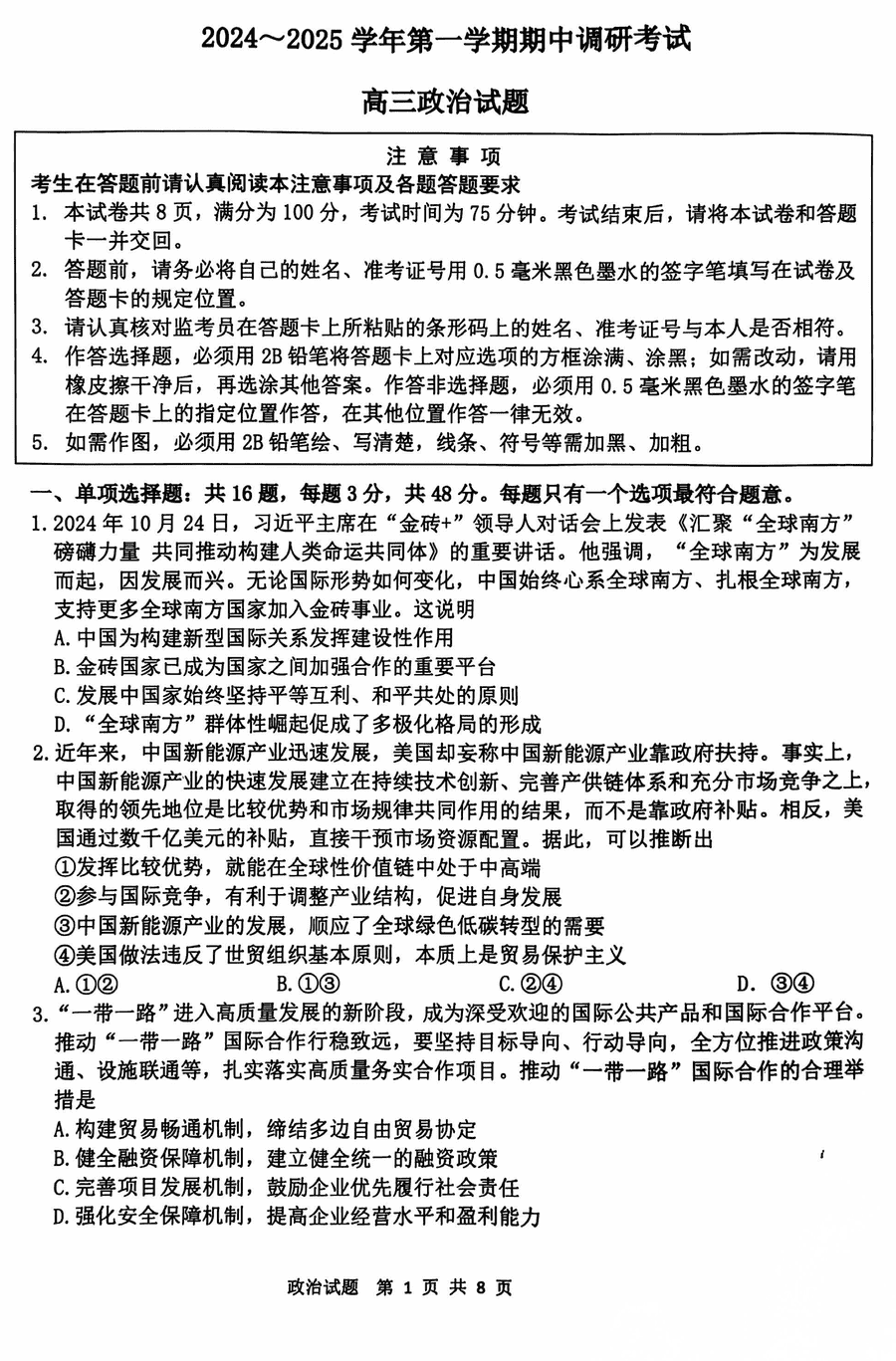 江苏连云港市2024-2025学年高三上学期期中政治考试已于近日开考,为方便考生考后及时查看考试情况,查漏补缺、弥补不足,本文整理了试题答案解析相关信息!