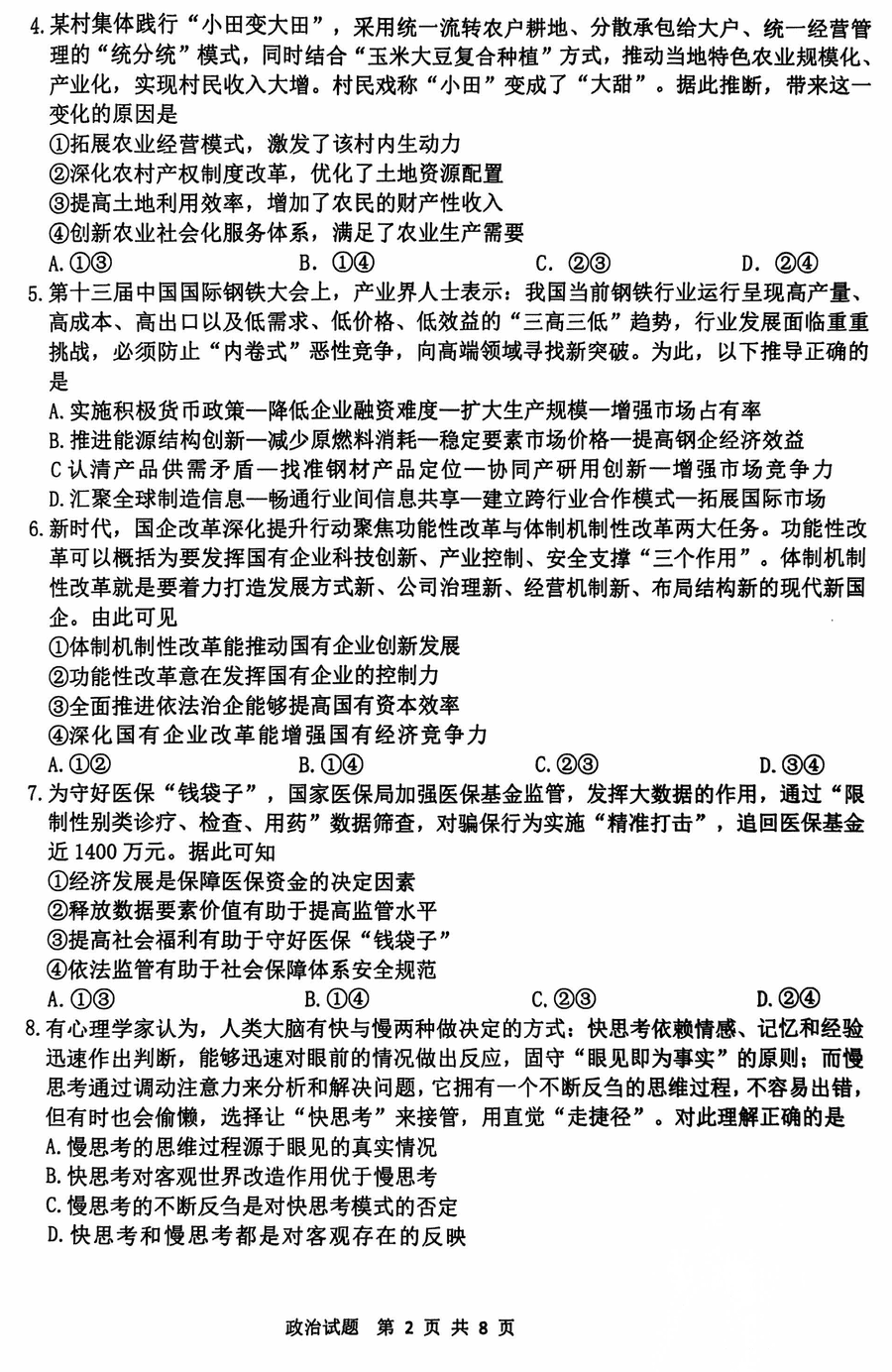 连云港市2024-2025学年高三上学期期中政治试题及答案