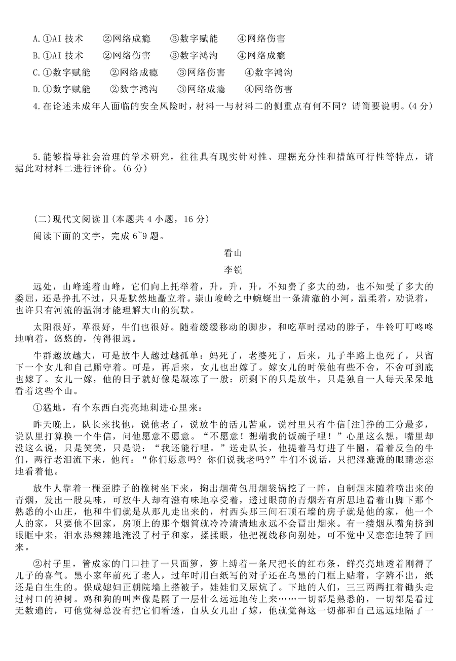 武汉江岸区2025届高三上学期11月调研语文试题及答案