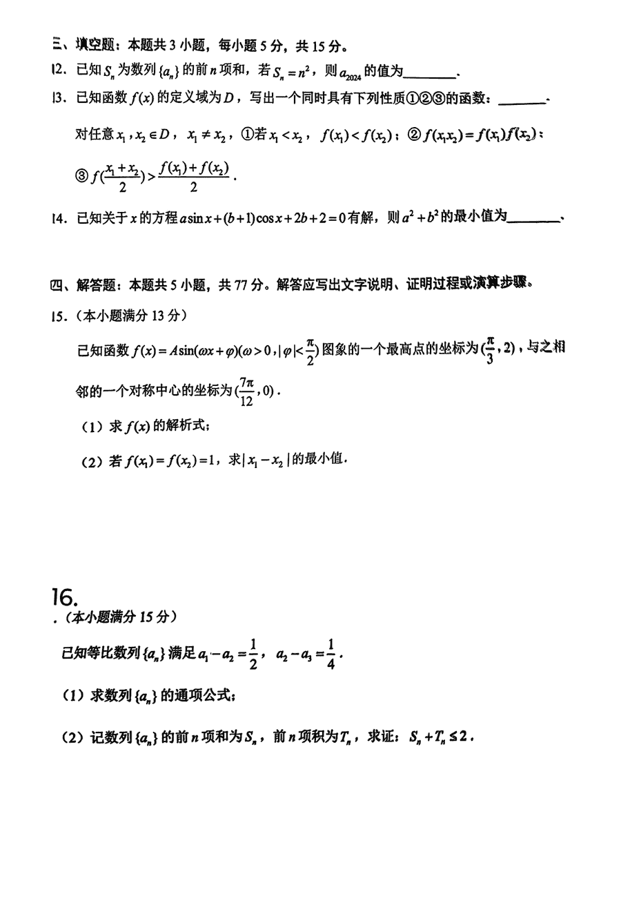 数学试题及答案解析