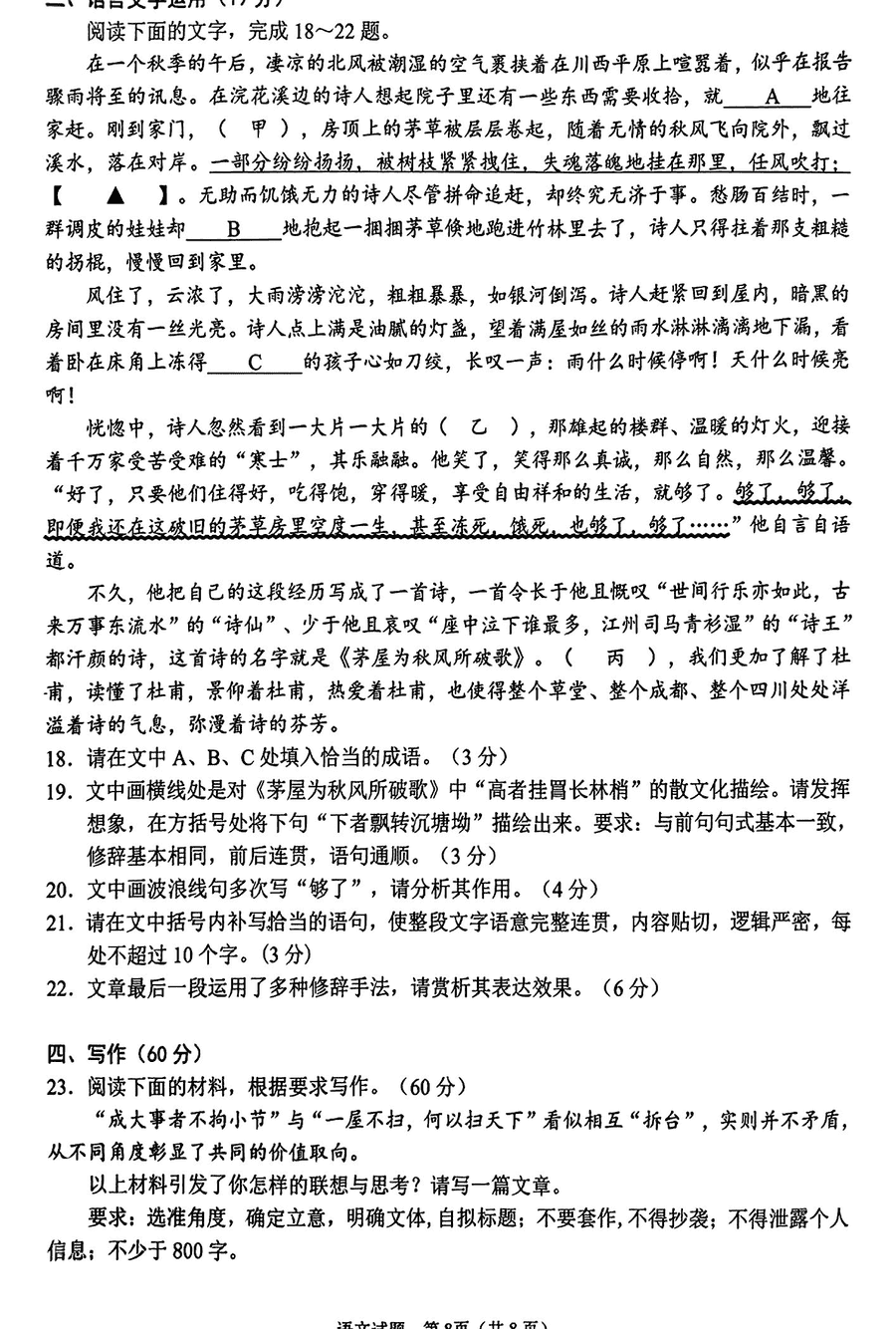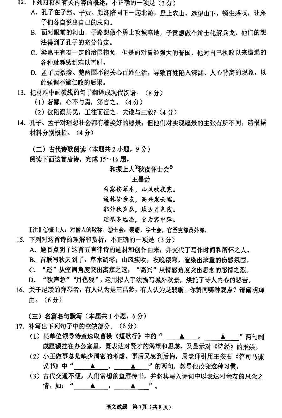 山东临沂2025届高三上学期11月期中质检语文试题及答案