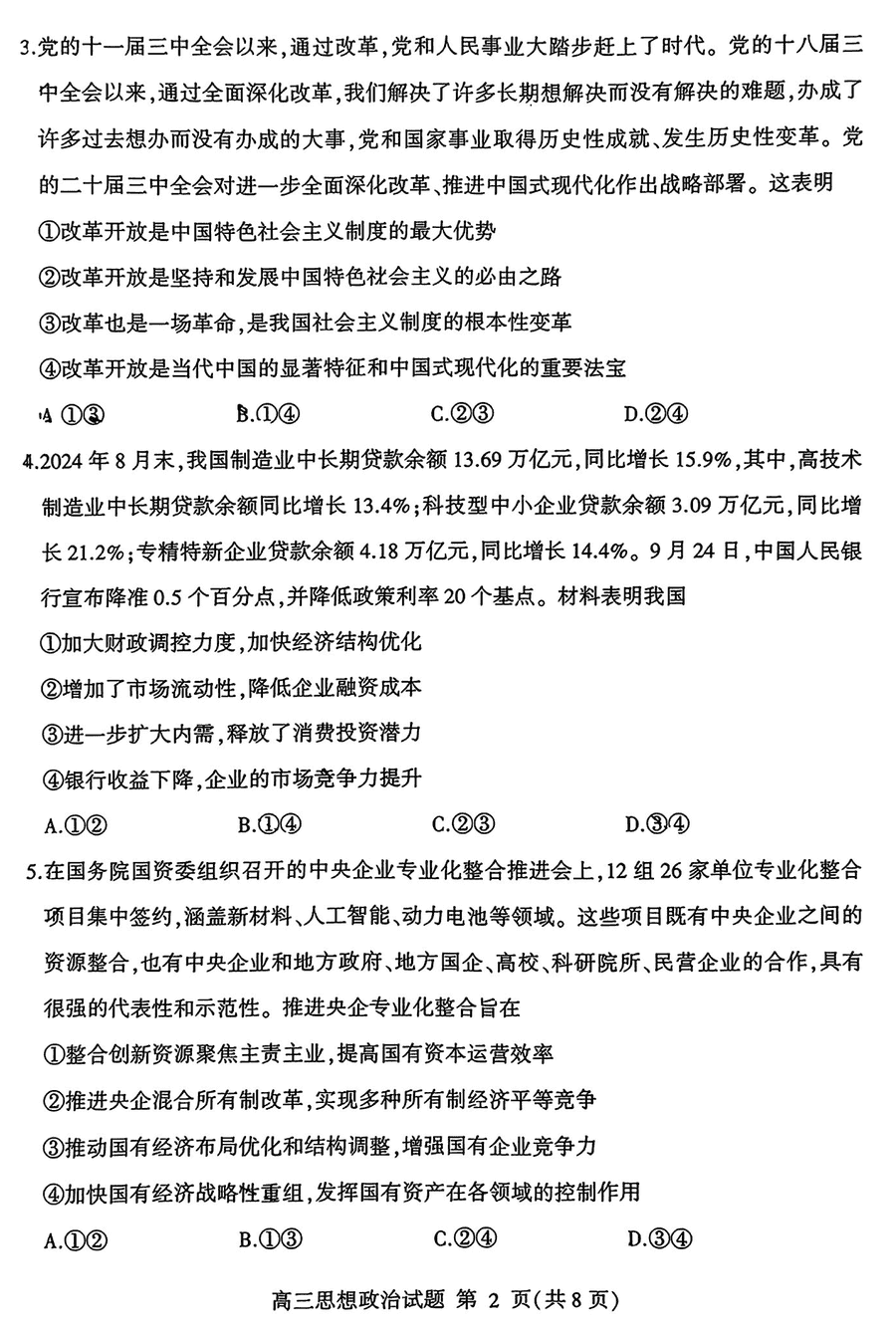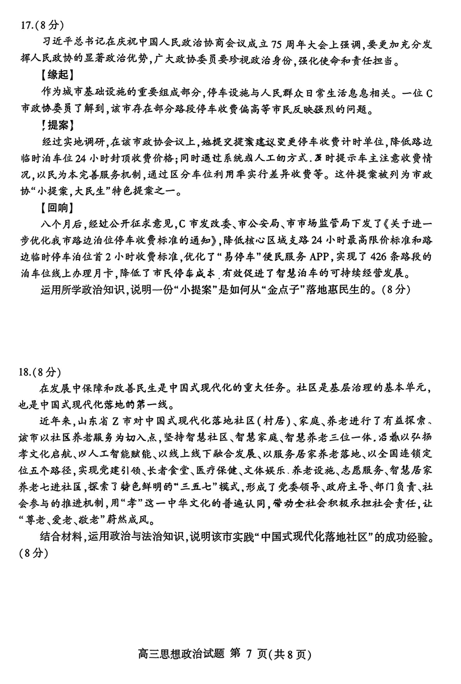 山东临沂2025届高三上学期11月期中质检政治试题及答案