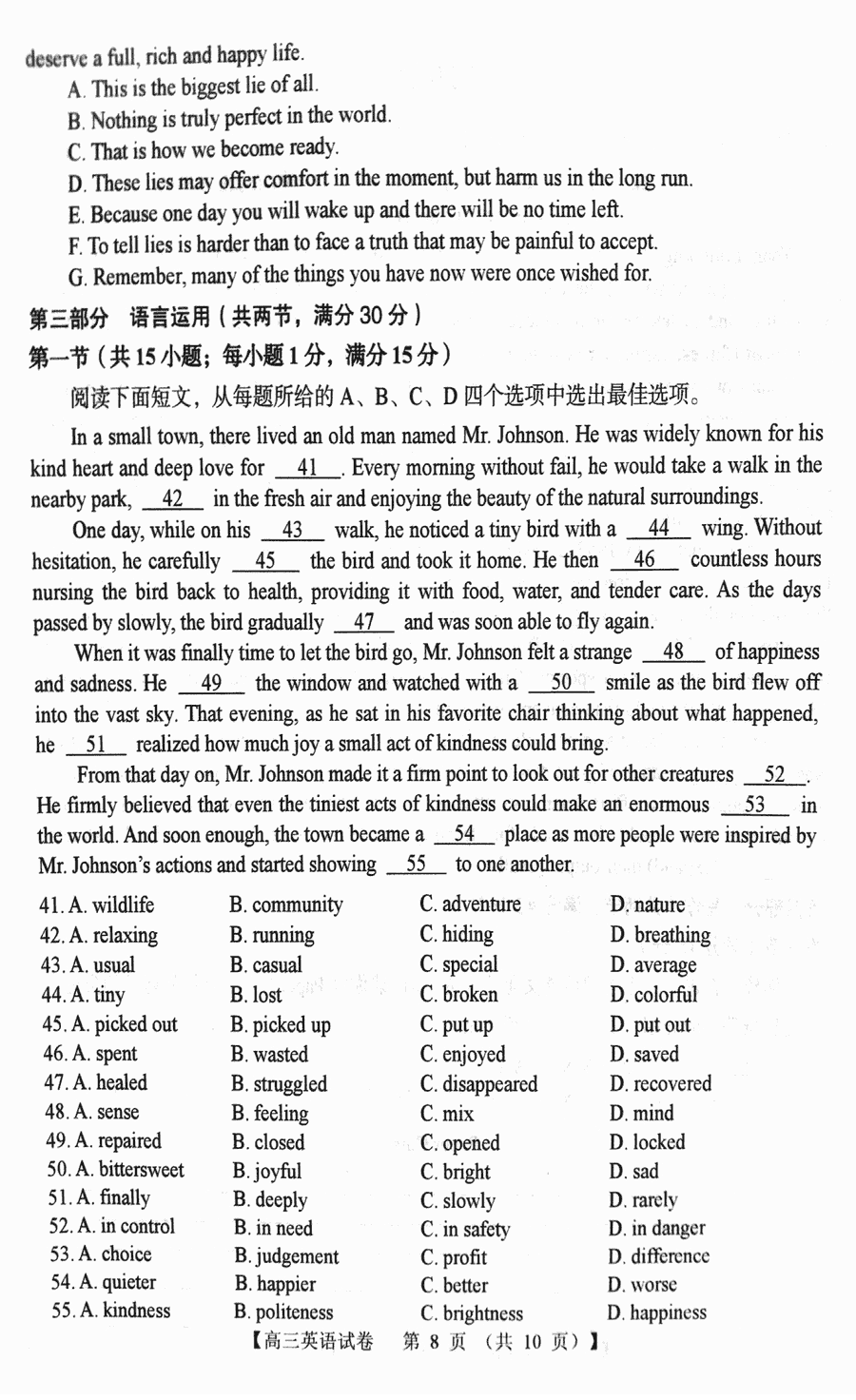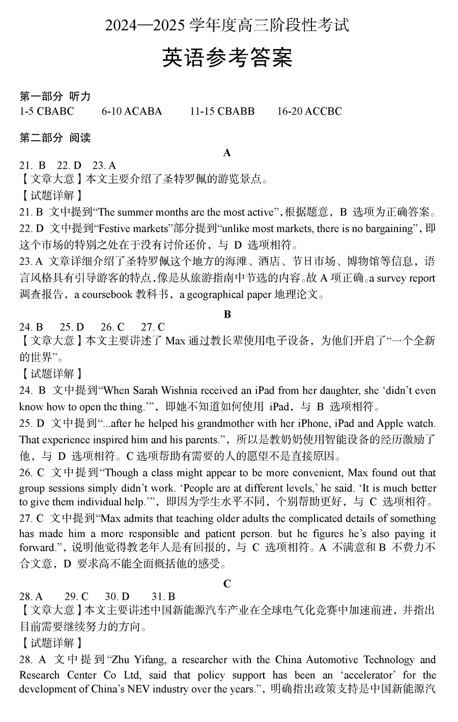 河南三门峡期中2024-2025学年高三上学期第三阶段考英语考试已于近日开考,为方便考生考后及时查看考试情况,查漏补缺、弥补不足,本文整理了试题答案解析相关信息!