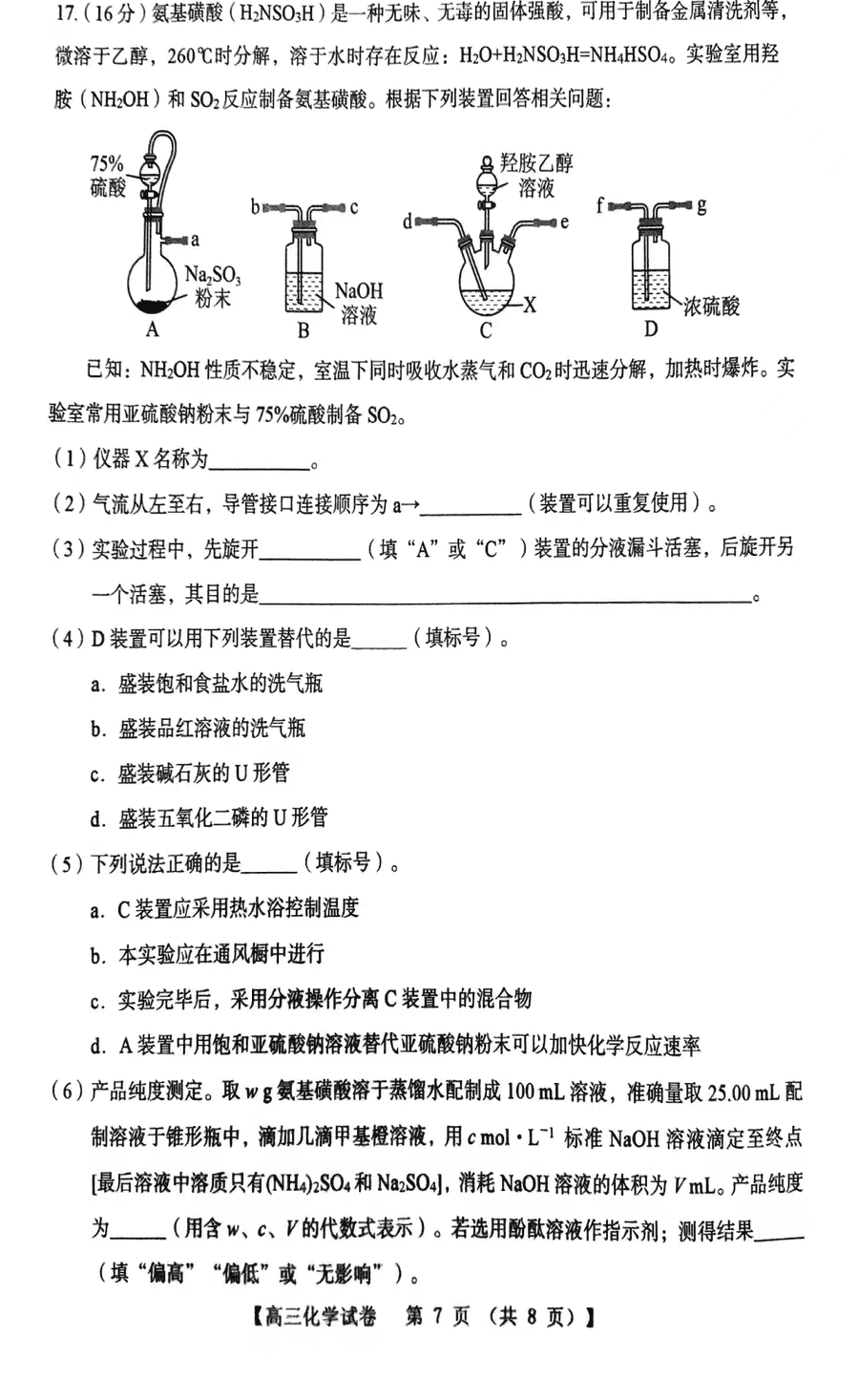 河南三门峡期中2024-2025学年高三上学期第三阶段考化学考试已于近日开考,为方便考生考后及时查看考试情况,查漏补缺、弥补不足,本文整理了试题答案解析相关信息!