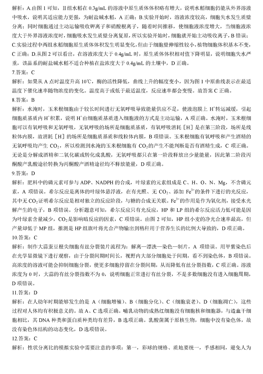 生物试题及答案解析