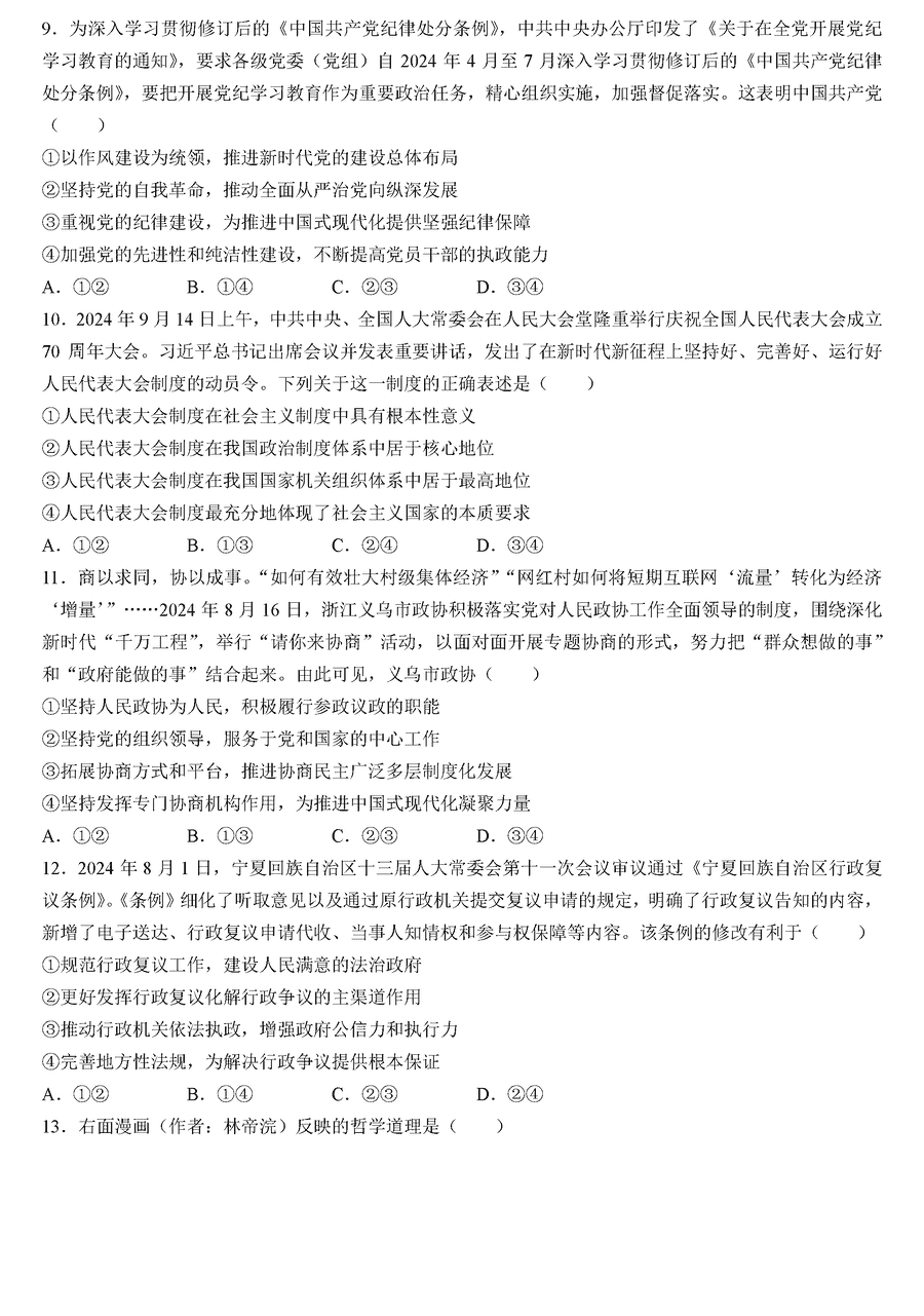 河南三门峡2024-2025学年高三上学期11月期中政治试题及答案