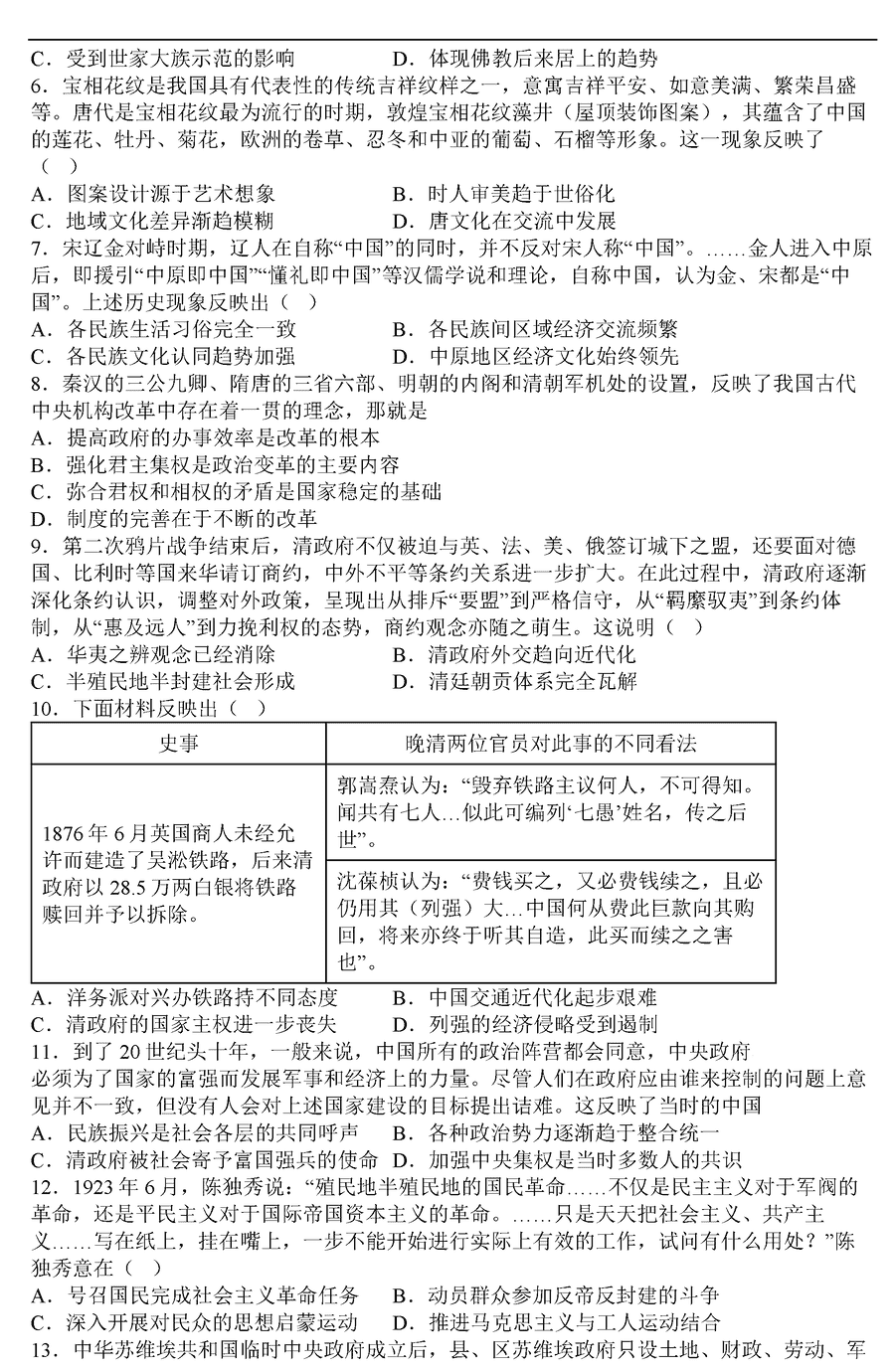 辽宁七校协作体2025届高三上学期11月期中历史试题及答案
