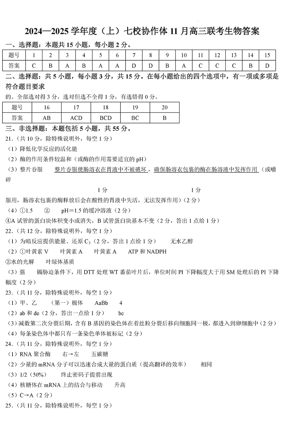 辽宁七校协作体2024-2025学年高三上学期11月期中联考生物考试已于近日开考,为方便考生考后及时查看考试情况,查漏补缺、弥补不足,本文整理了试题答案解析相关信息!