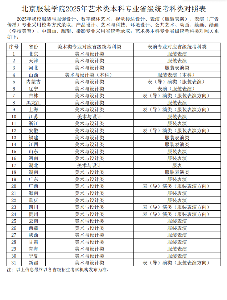 北京服装学院艺术类校考专业和统考专业