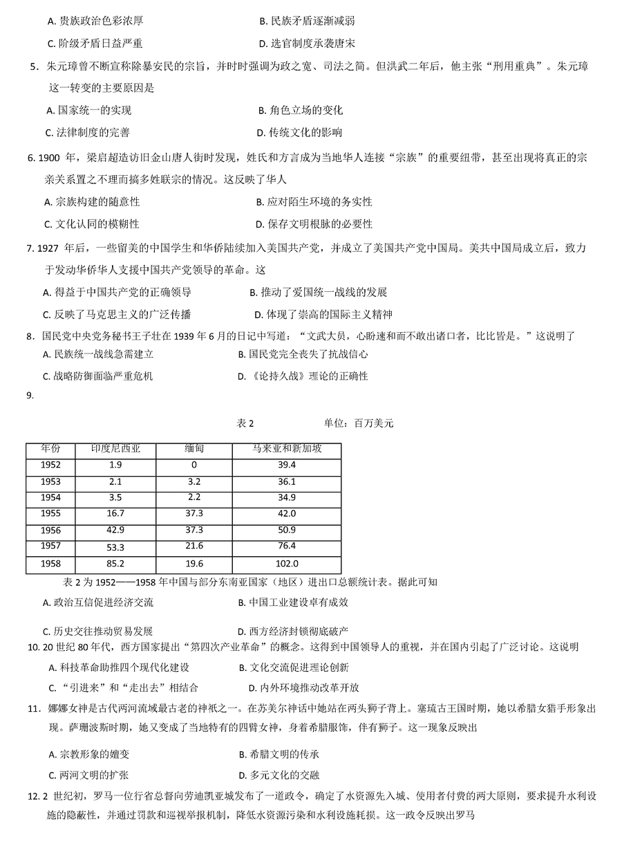 福建名校联考2025届高三11月期中质检历史试题及答案
