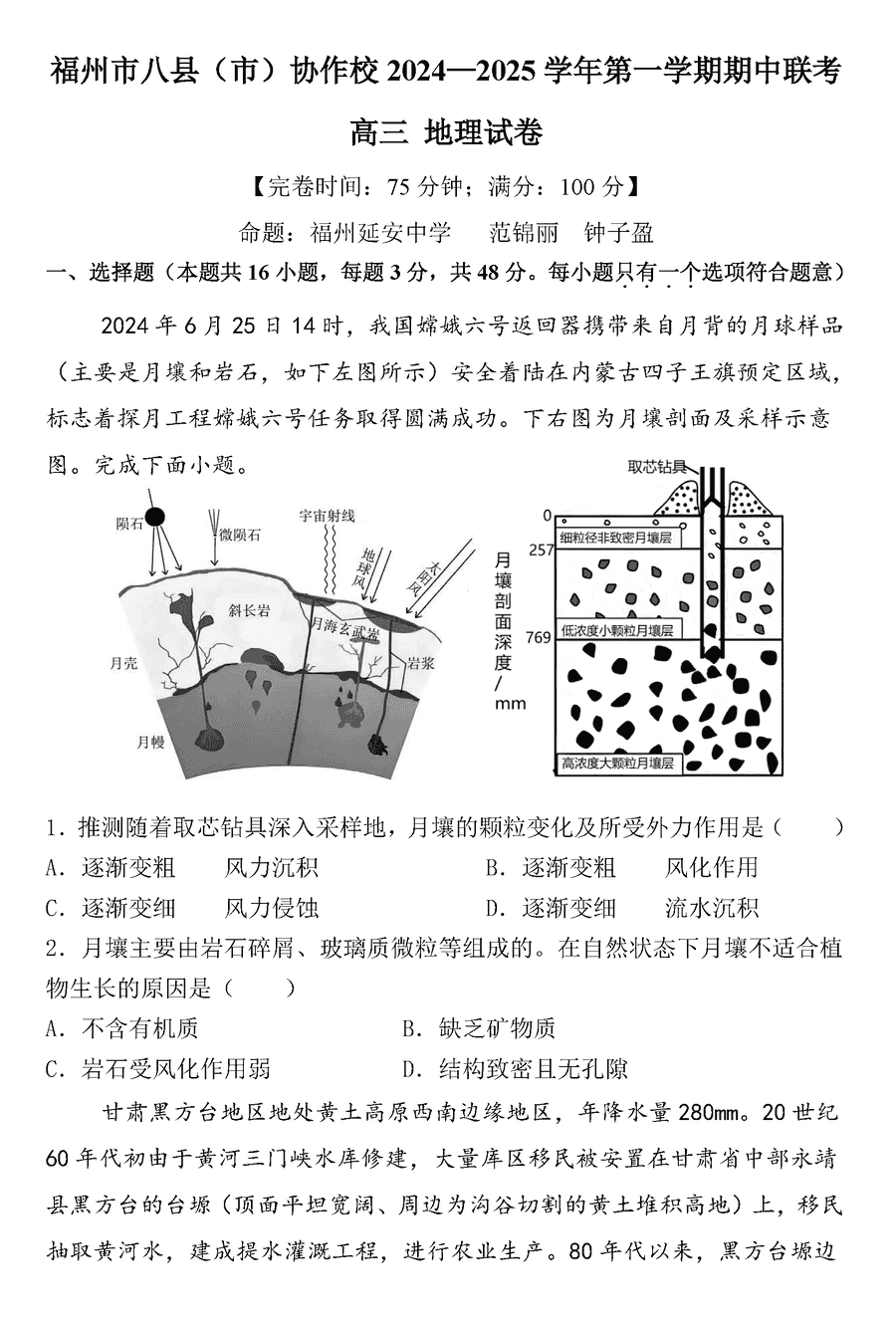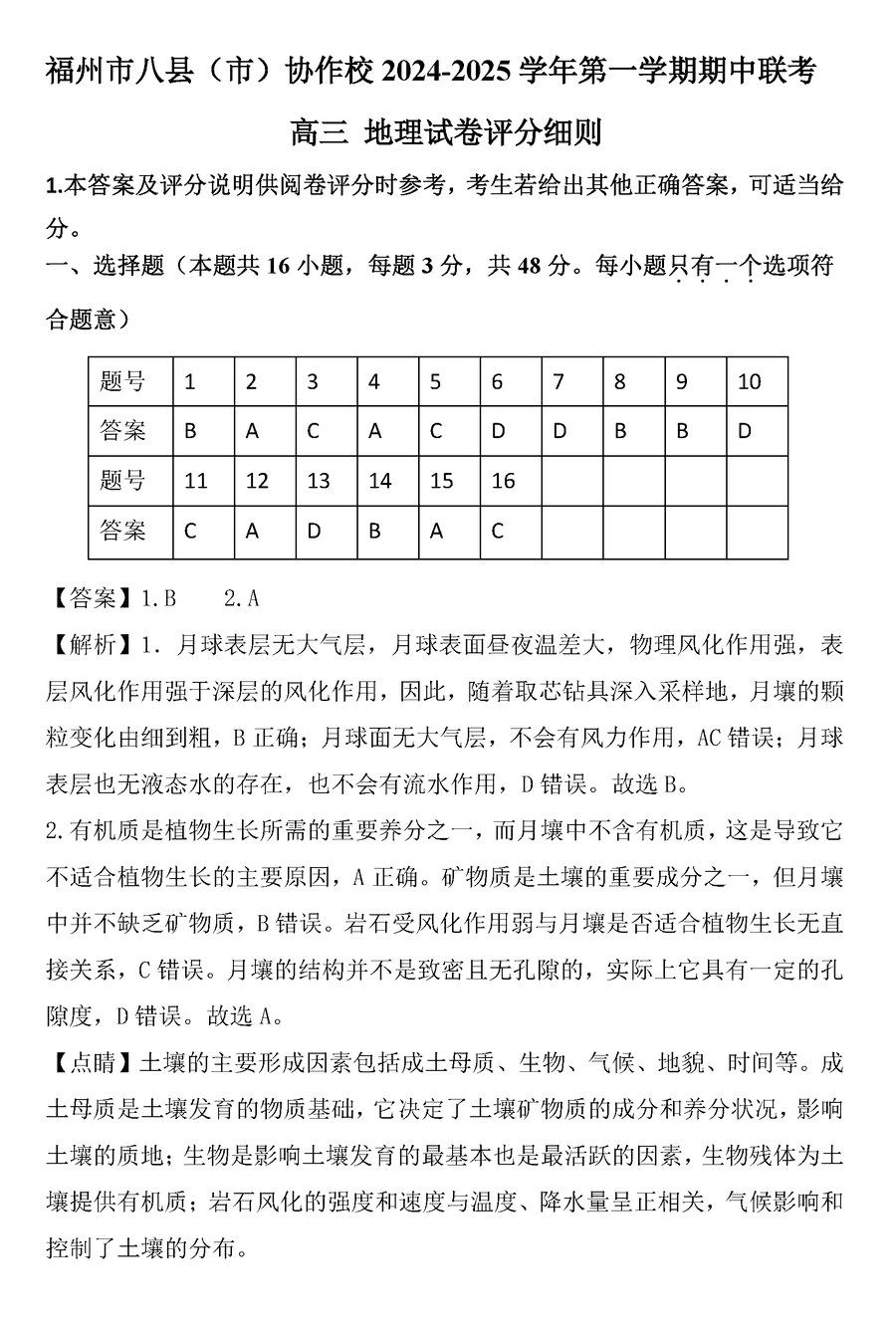 福州八县市协作校2025届高三上学期期中联考地理考试已于近日开考,为方便考生考后及时查看考试情况,查漏补缺、弥补不足,本文整理了试题答案解析相关信息!