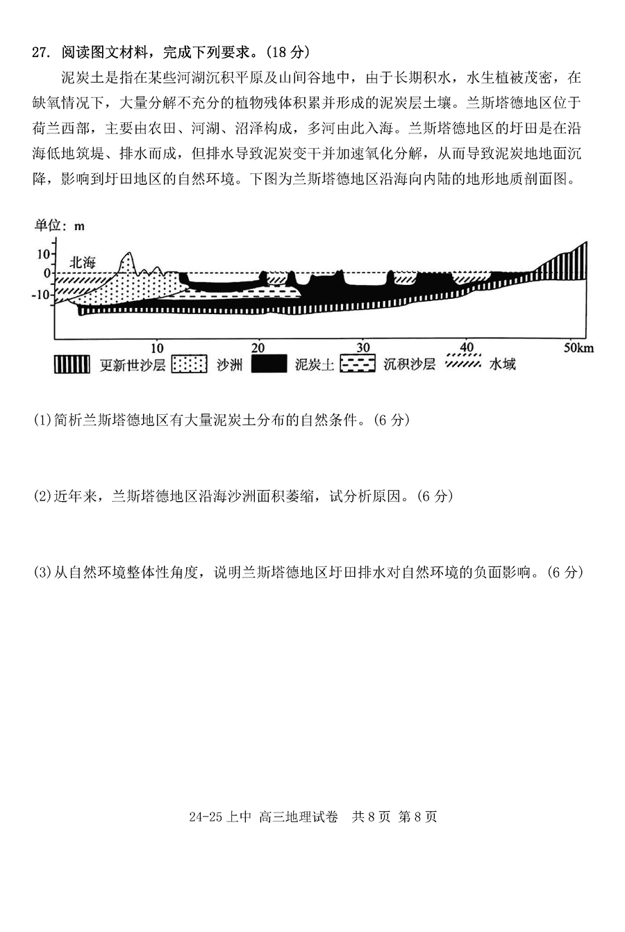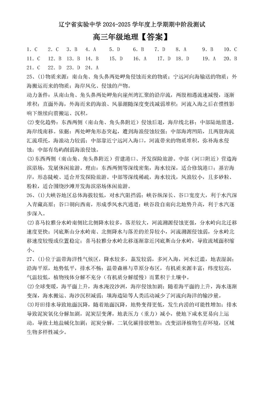 辽宁实验中学2024-2025学年高三上学期期中地理试题及答案