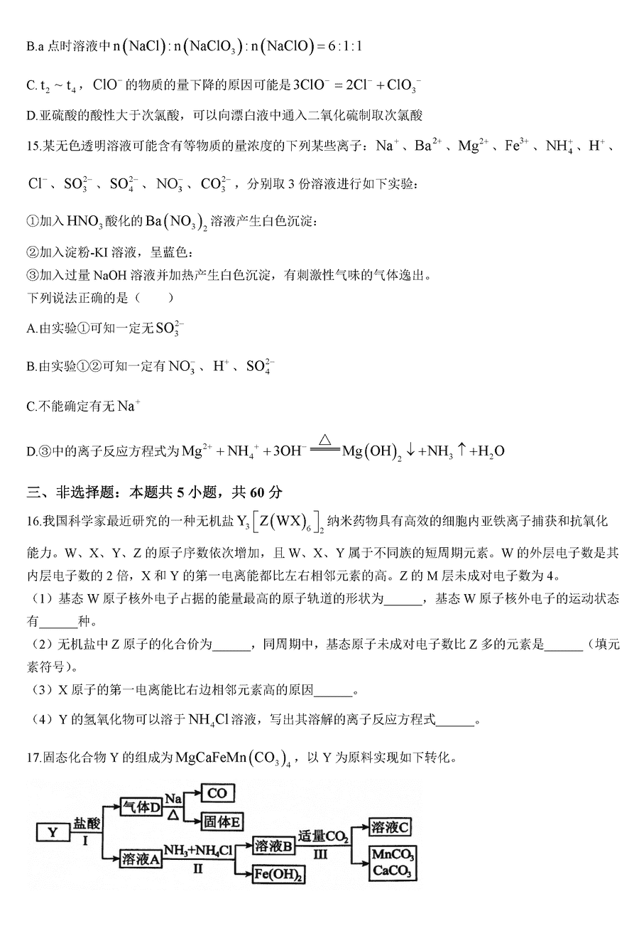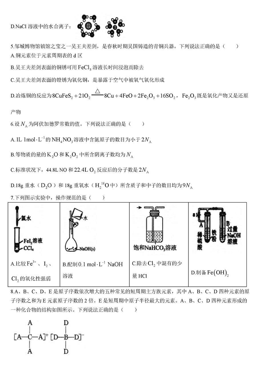 山东济宁2024-2025学年高三上学期期中化学试题及答案