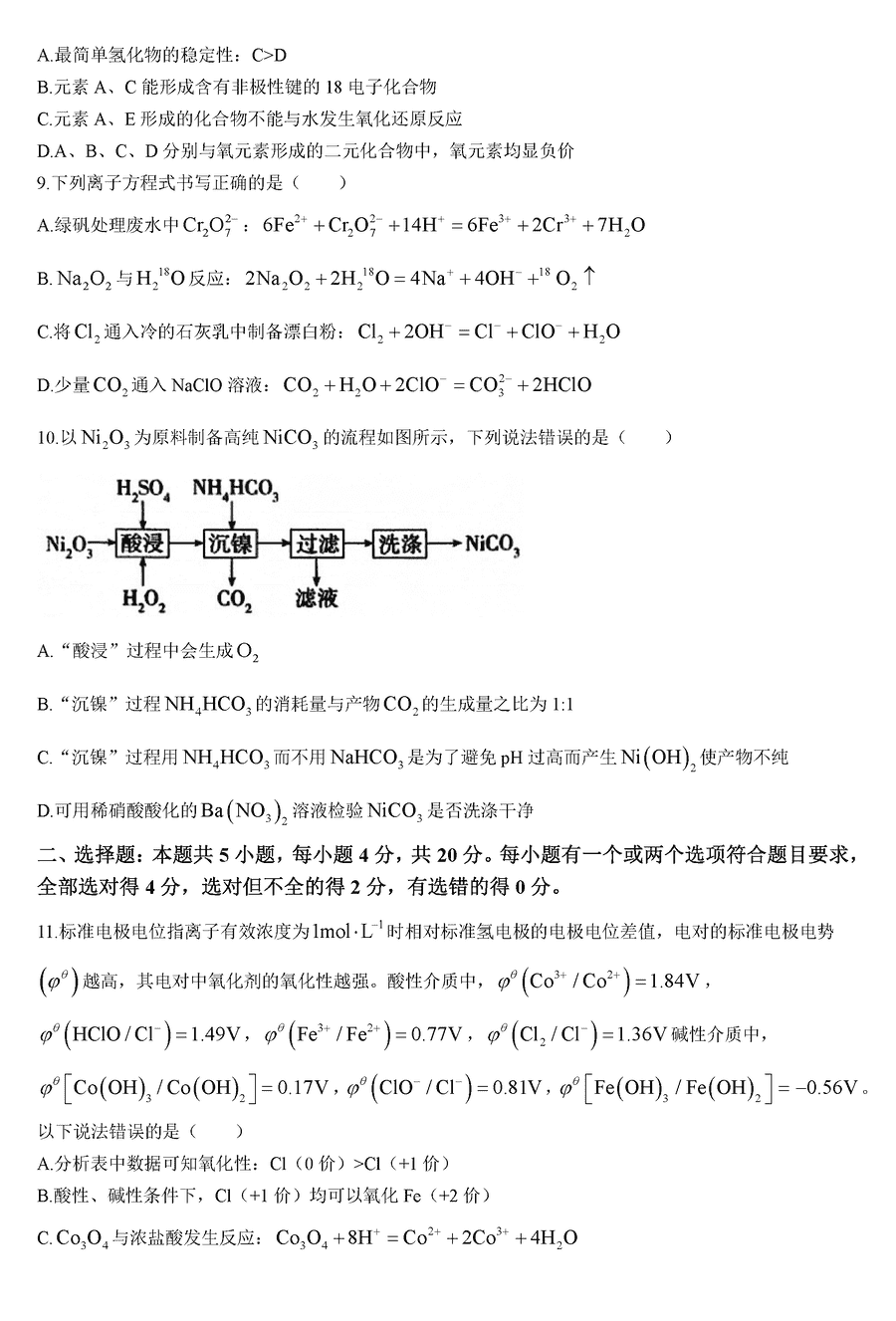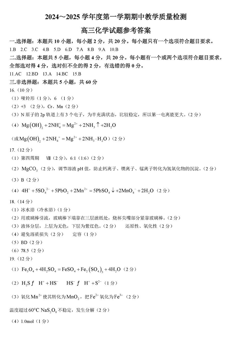 山东济宁2024-2025学年高三上学期期中化学考试已于近日开考,为方便考生考后及时查看考试情况,查漏补缺、弥补不足,本文整理了试题答案解析相关信息!