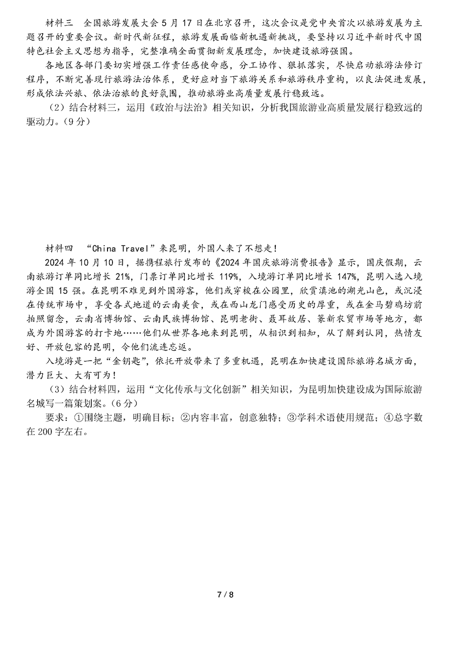 云南 文综试题