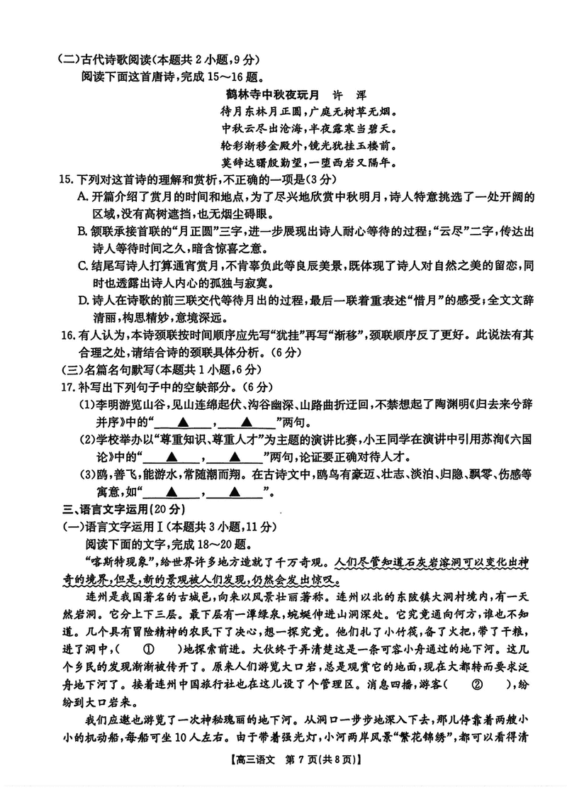 河北沧衡名校联盟2025届高三上学期11月期中语文考试已于近日开考,为方便考生考后及时查看考试情况,查漏补缺、弥补不足,本文整理了试题答案解析相关信息!