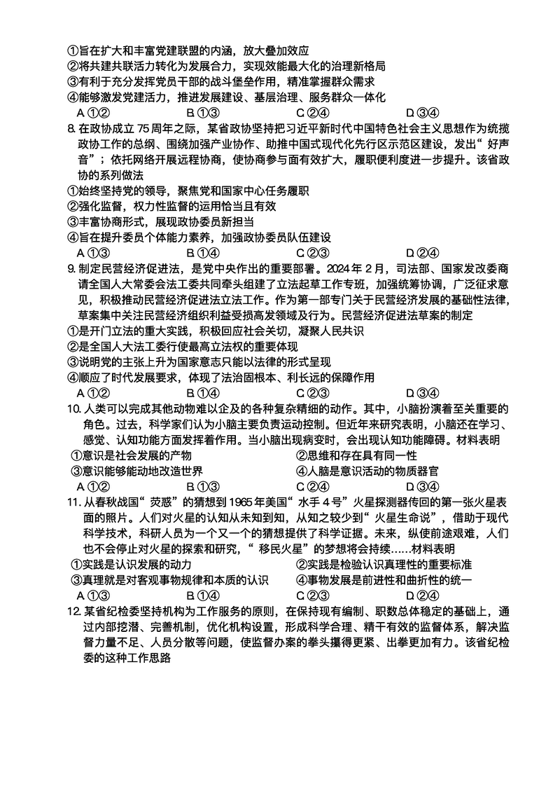 河南金科新未来大联考2025届高三上11月质检政治试题及答案