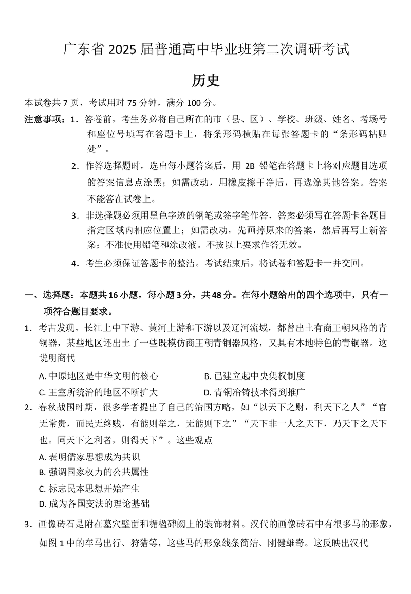 2025届广东高三第二次调研历史试题及答案 时间:2024-11-22 01:38 广东 文综试题 2025届广东高三第二次调研历史考试已于近日开考,为方便考生考后及时查看考试情况,查漏补缺、弥补不足,本文整理了试题答案解析相关信息! 汇总:2025届广东高三第二次调研考试试题及答案汇总 历史试题及答案解析