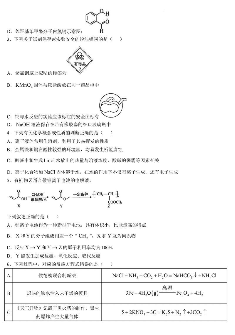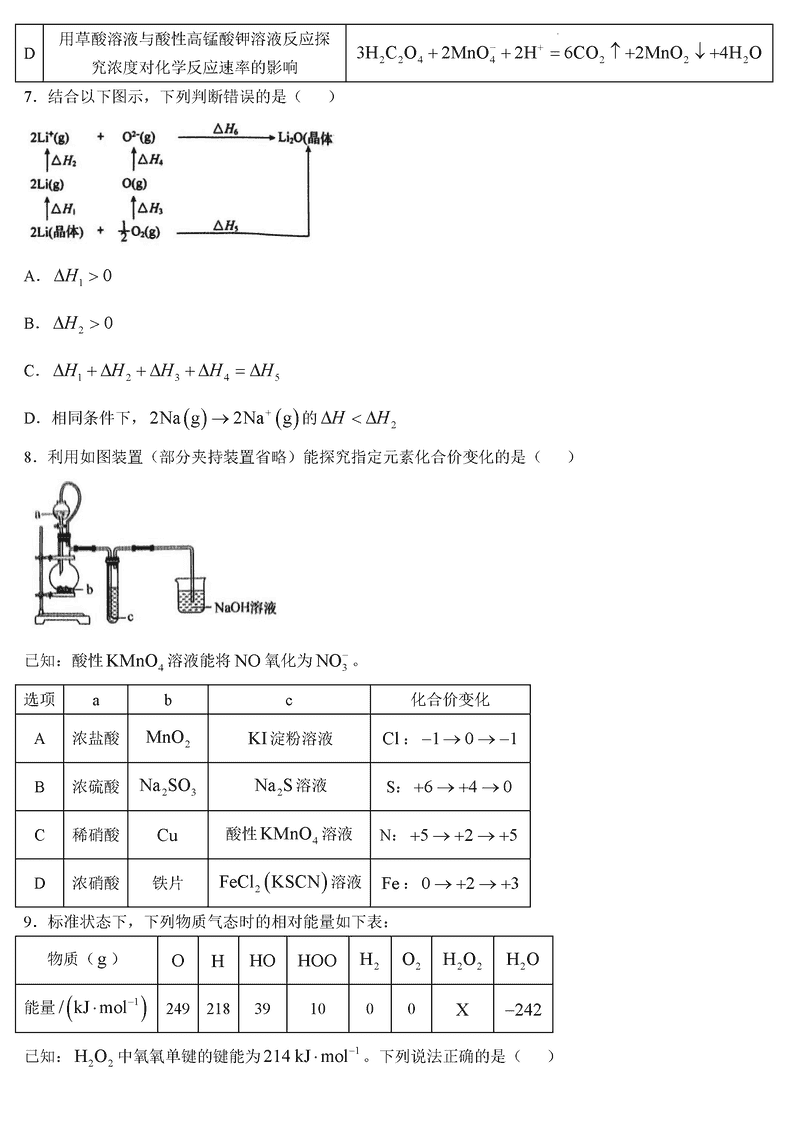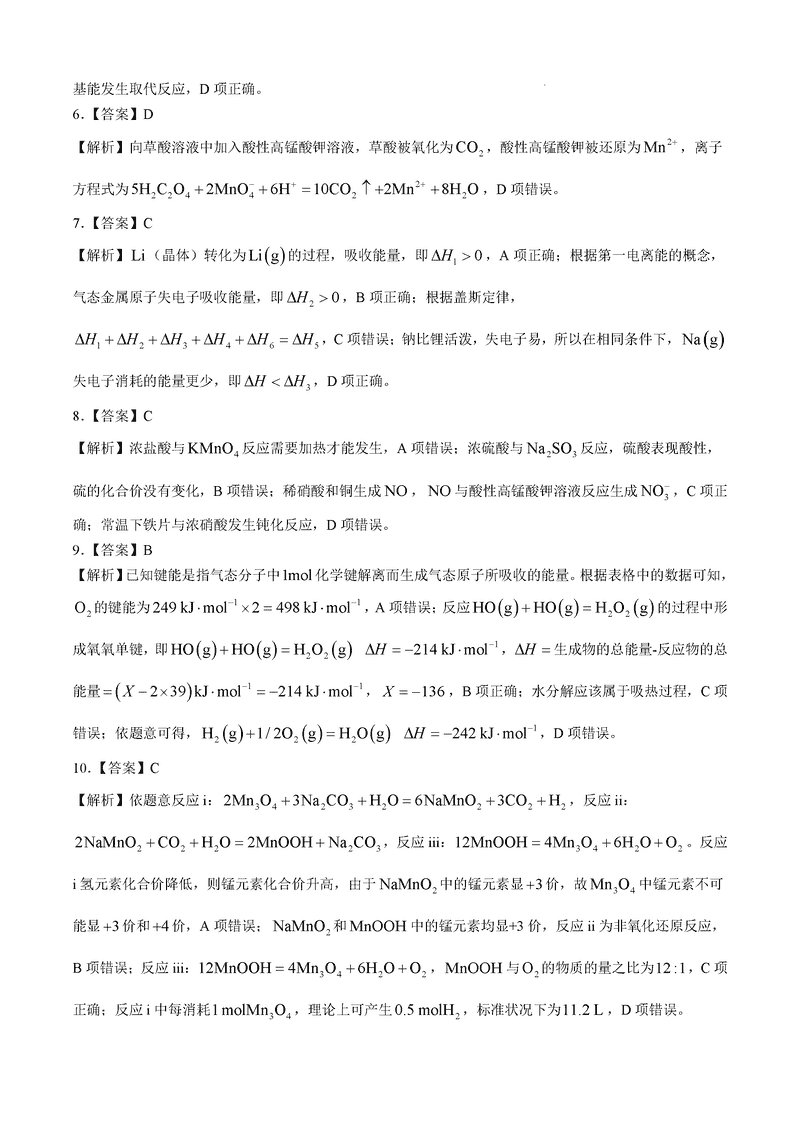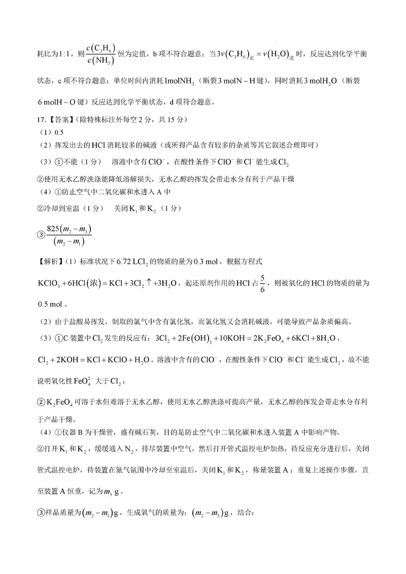 化学试题及答案解析