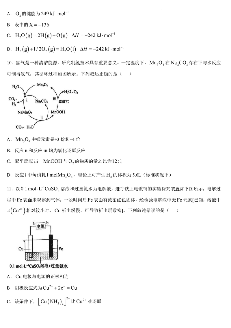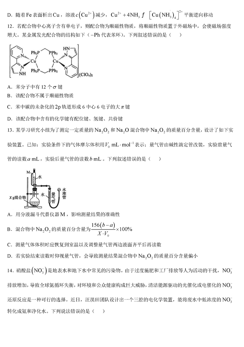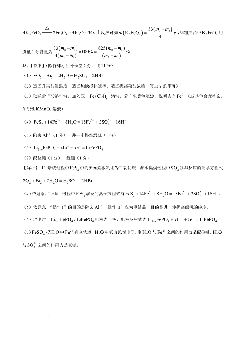 湖南三湘名校教育联盟2025届高三第二次大联考化学试题及答案