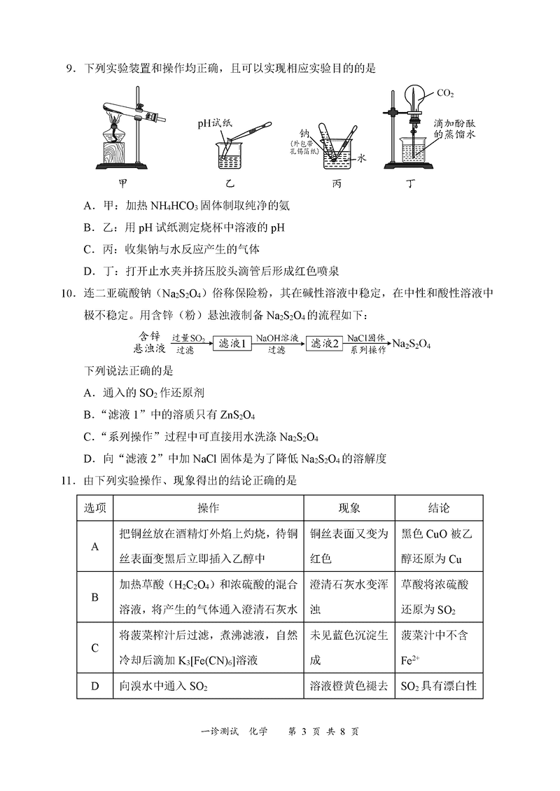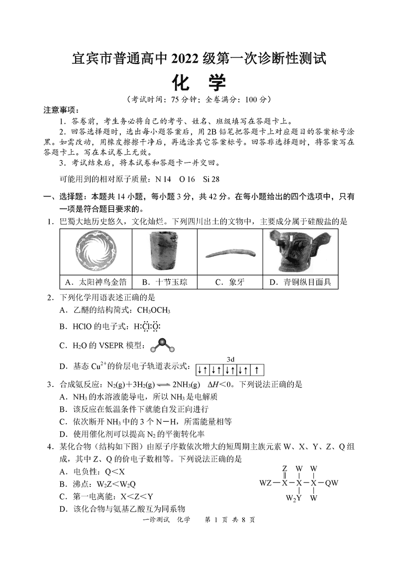四川宜宾一诊2025届高三第一次诊断性化学考试已于近日开考,为方便考生考后及时查看考试情况,查漏补缺、弥补不足,本文整理了试题答案解析相关信息!