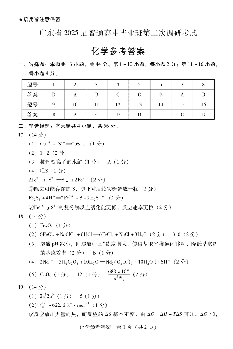 2025届广东高三第二次调研化学试题及答案 时间:2024-11-23 16:46 广东 理综试题 2025届广东高三第二次调研化学考试已于近日开考,为方便考生考后及时查看考试情况,查漏补缺、弥补不足,本文整理了试题答案解析相关信息! 汇总:2025届广东高三第二次调研考试试题及答案汇总 化学试题及答案解析