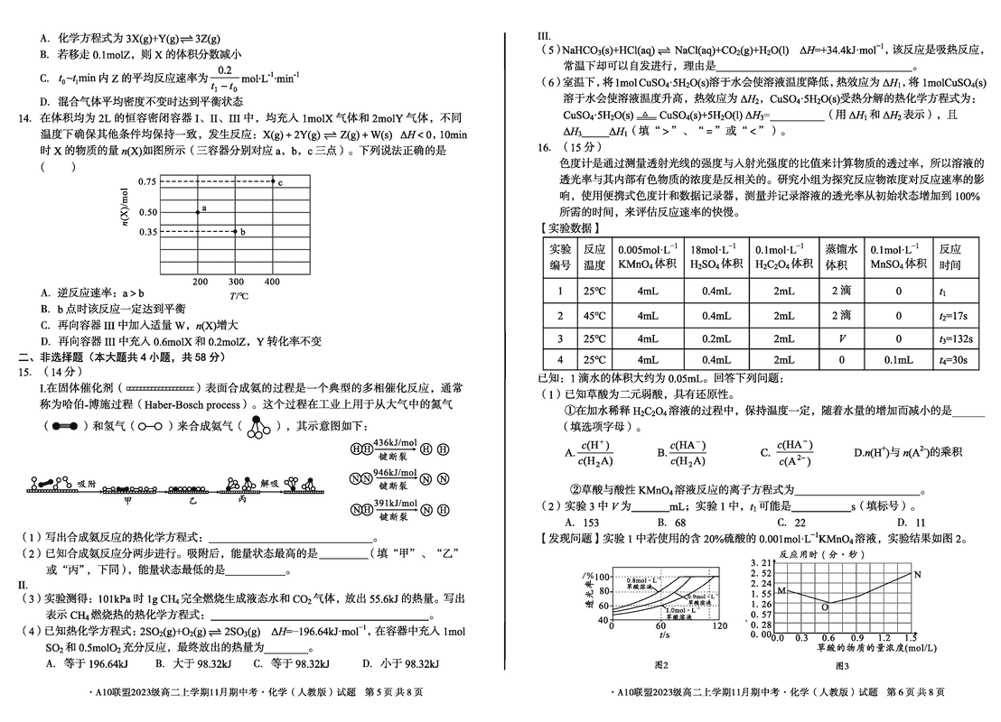 汇总:安徽A10联盟2023级高二11月期中考试试题及答案汇总