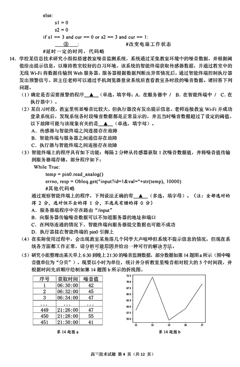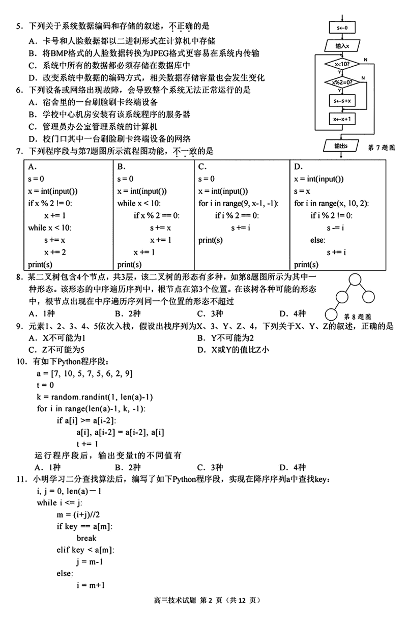 浙江省9+1高中联盟2025届高三期中技术试题及答案