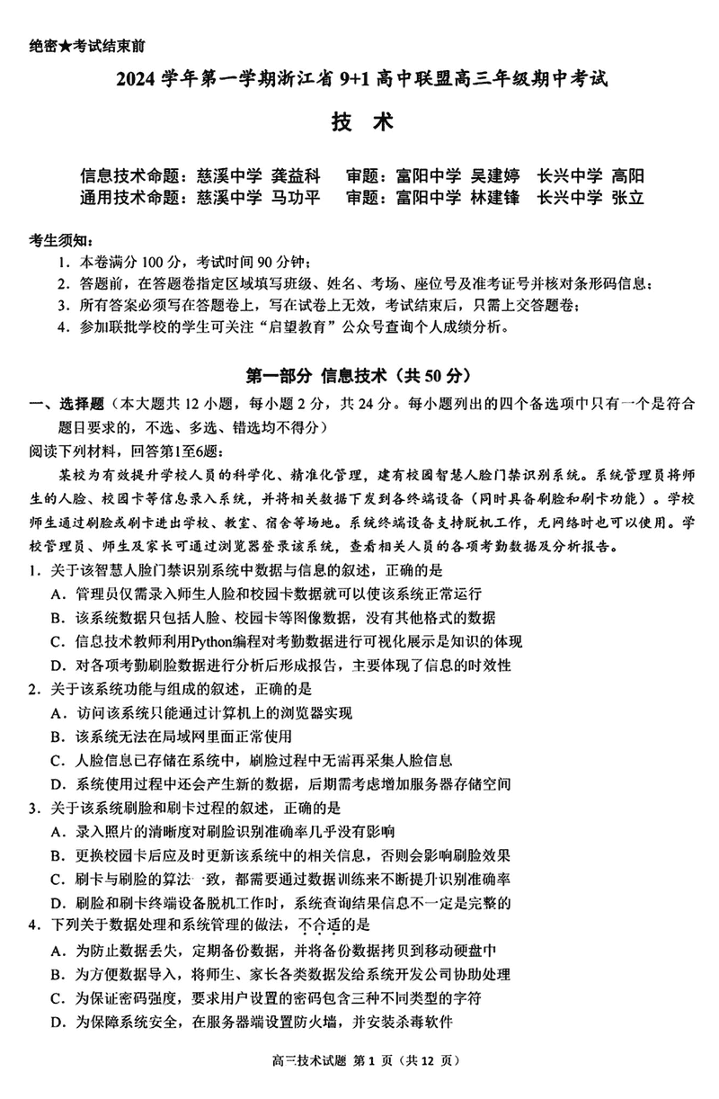 浙江省9+1高中联盟2025届高三期中技术考试已于近日开考,为方便考生考后及时查看考试情况,查漏补缺、弥补不足,本文整理了试题答案解析相关信息!