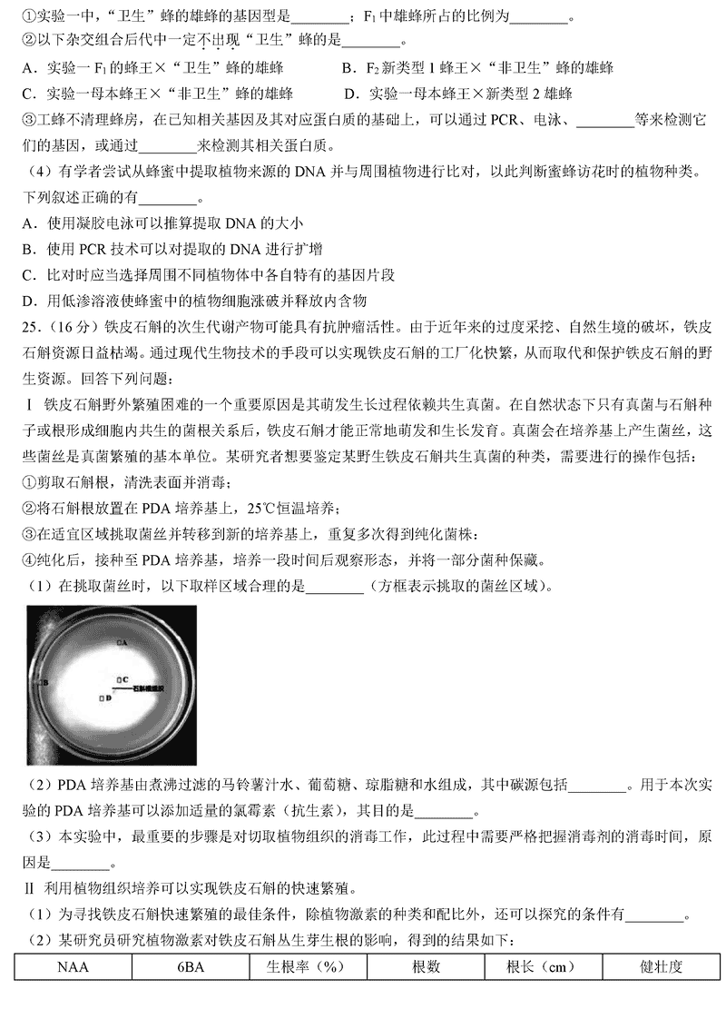 浙江省9+1高中联盟2025届高三期中生物试题及答案