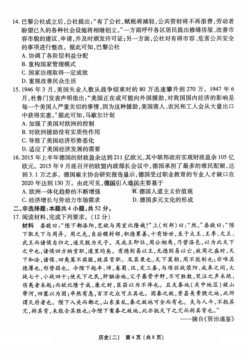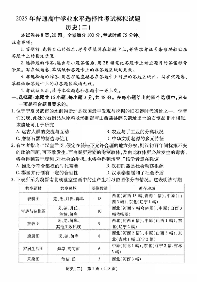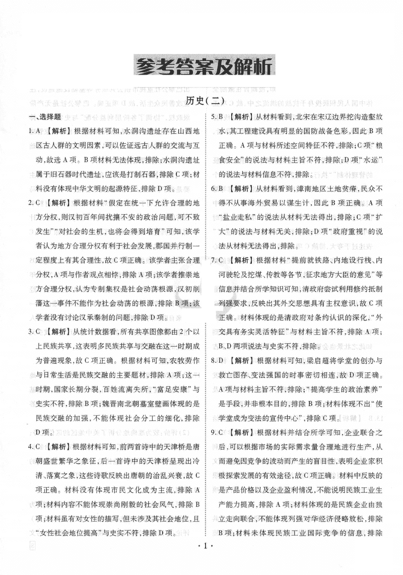 历史试题及答案解析